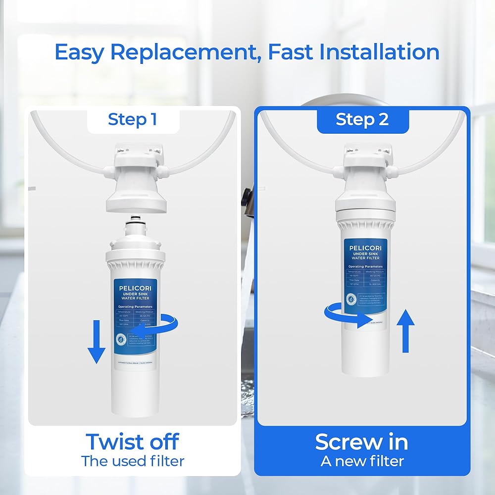 • تم تصميم اللف والقفل. يوفر التصميم البسيط استبدالًا سهلاً للفلتر بدون أدوات وبدون فوضى. خرطوشة كويك تويست 1/4 دورة تجعل تغيير المرشحات سريعًا وسهلاً.