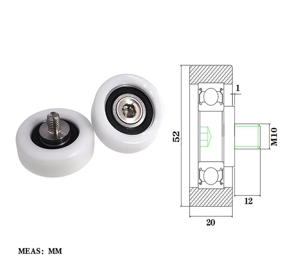 Externally threaded POM plastic-coated bearing BS600452-20C1L12M10 high wear-resistant nylon threaded guide wheel