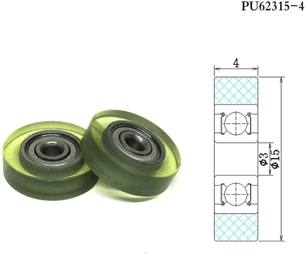 10 pieces 3x15x4 polyurethane covered bearing roller PU62315-4 15mm diameter 3mm hole polyurethane silent guide wheel 3*15*4 PU wheel