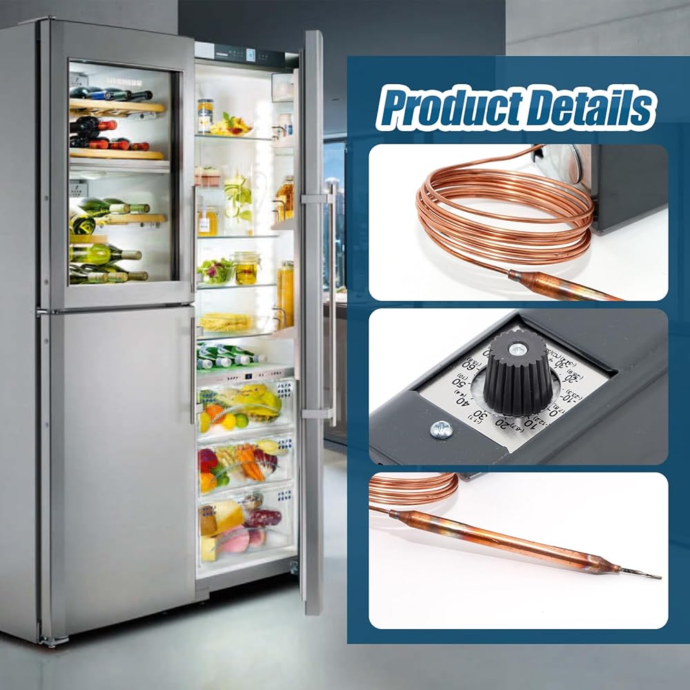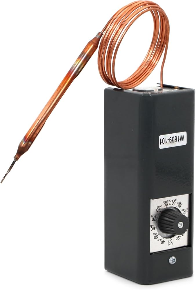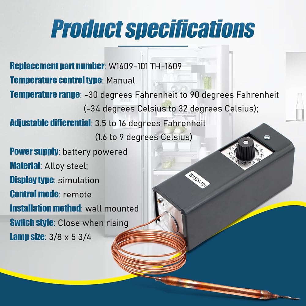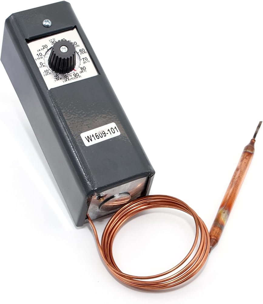 W1609-101 TH-1609 ترموستات للتحكم في درجة الحرارة للتبريد، -30 درجة فهرنهايت إلى 90 درجة فهرنهايت (-34 درجة مئوية إلى 32 درجة مئوية)، 5 أقدام شعرية، 3.5 درجة فهرنهايت إلى 16 درجة فهرنهايت، لمبة استشعار عن بعد