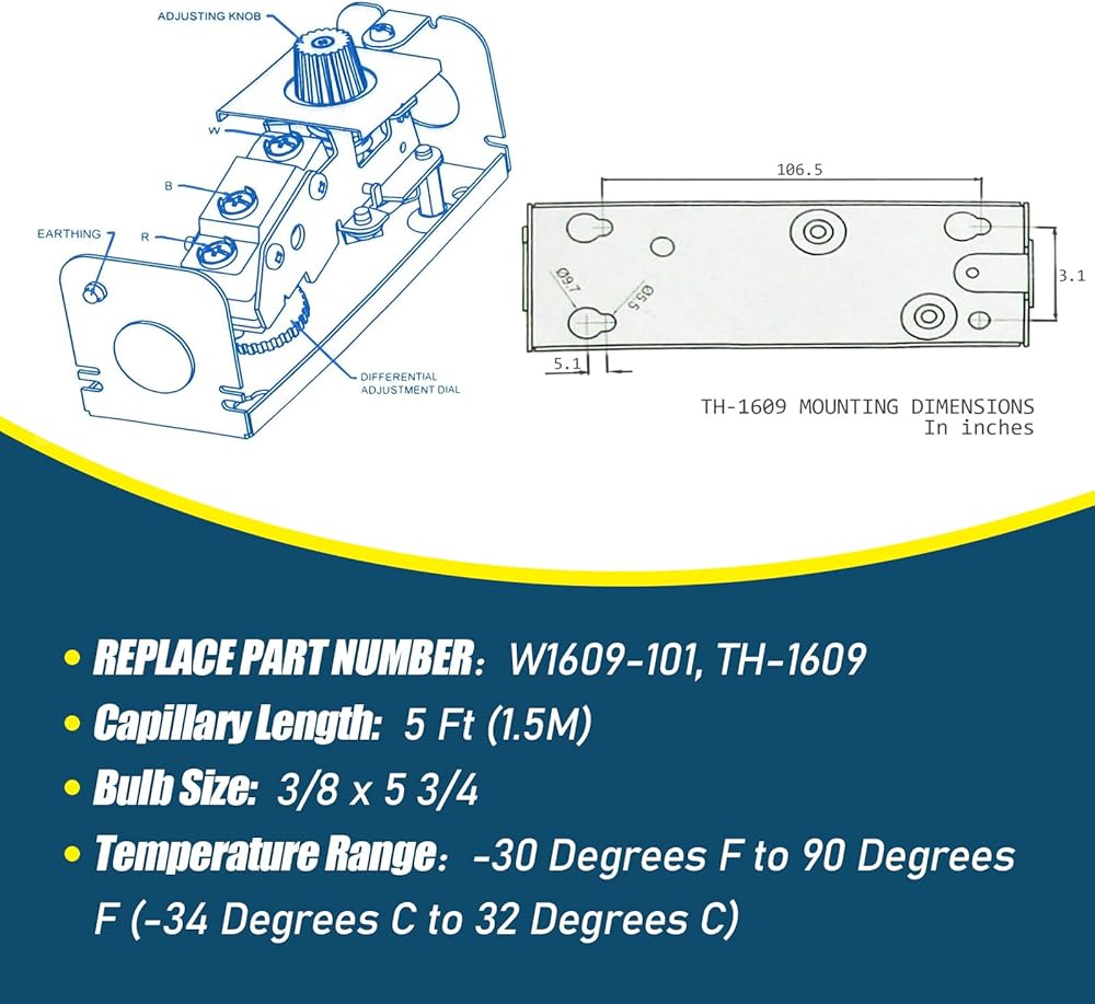 جزء بديل متوافق: يستبدل مباشرة منظمات الحرارة W1609-101 وTH-1609 المستخدمة عادة في وحدات التبريد التجارية وأنظمة التجميد