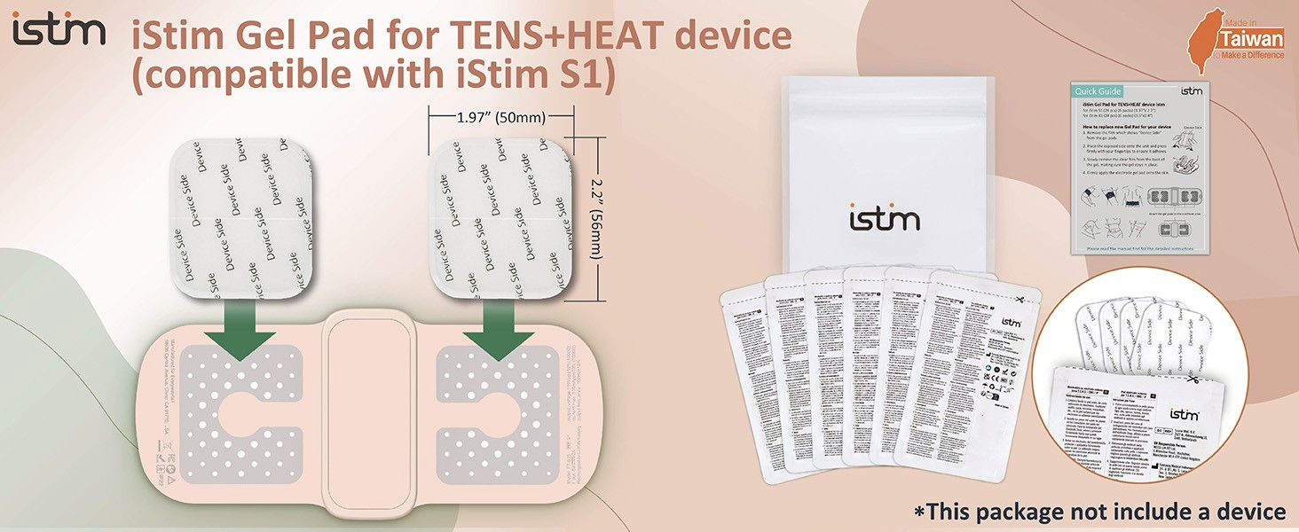 • التوافق: تتوافق وسادات الجل ذات الوحدات العشرية هذه فقط مع وحدة iStim S1 TENS+HEAT. هذه الوسادات هي أفضل الملحقات البديلة لجهاز iStim S1 TENS+HEAT الخاص بك.