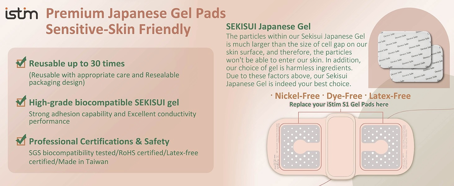 • قابلة لإعادة الاستخدام، ممتازة، أقطاب كهربائية من الدرجة الطبية: يمكن استخدام وسادات جل Sekisui اليابانية حتى 30 مرة إذا كان ذلك صحيحًا. جل سيكيسوي المستخدم بنسبة 100% هو مكونات غير ضارة وهو الأنسب لمستخدمي البشرة الحساسة. نوصي بشدة: استخدم أقطاب iStim عالية الجودة مع وحدة iStim X1TENS، مما يجعل كل علاج لتخفيف الألم أكثر فعالية مع تجربة مثالية. [ملاحظة: لا تستخدم جل كهربائي إضافي]