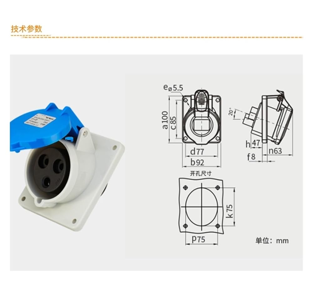 مقبس موصل المقبس الصناعي TYPR3801 (32A3 كور) مقعد إمالة IP44