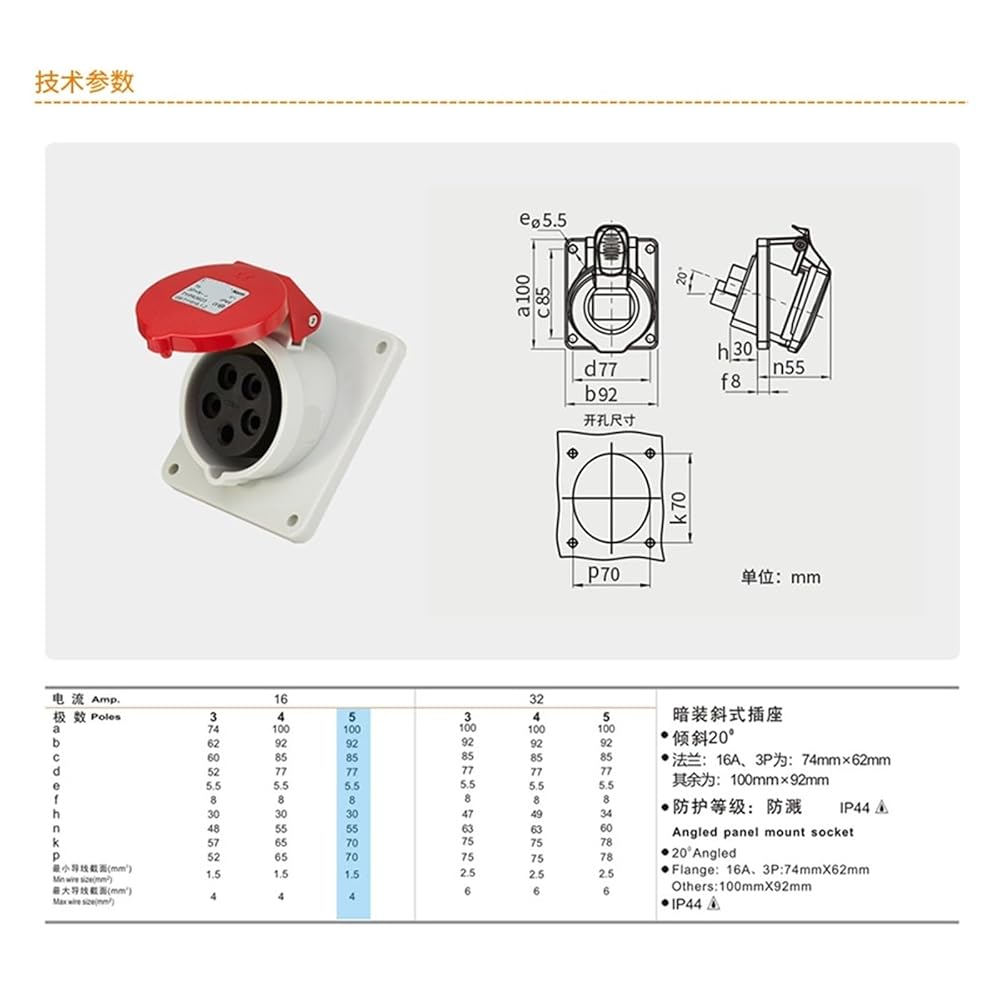 مقبس الطيران الصناعي TYPR3623 (16A5 كور) مقعد قابل للإمالة IP44