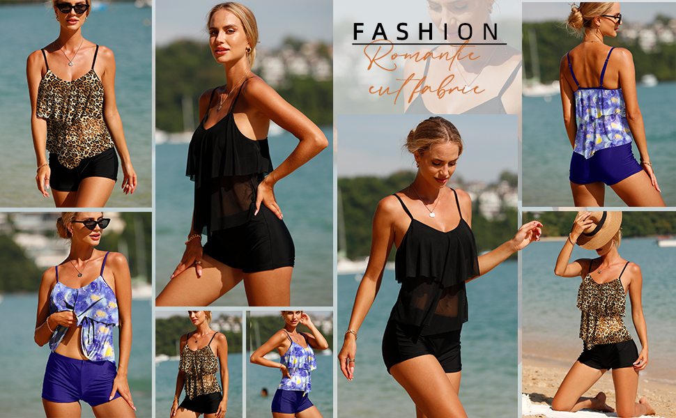 تصميم شبكي متعدد الطبقات: تتميز مجموعات ملابس السباحة تانكيني ذات الرقبة على شكل حرف V بشبكة مكشكشة ذات طبقات، مما يجعلك تبدين جذابة وساحرة. ملابس السباحة المنتفخة المكونة من 14 قطعة مع حمالة صدر قابلة للإزالة تحمل الثديين بشكل مثالي وتمنحهما شكلاً مثاليًا.