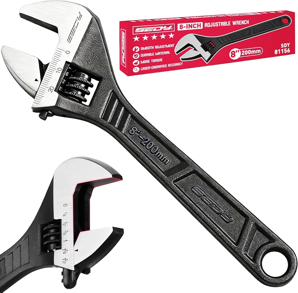 مفتاح ربط قابل للتعديل مقاس 10 بوصات من SEDY، مفتاح فك واسع بلمسة نهائية من أكسيد الأسود بمقياس بوصة/متري، فولاذ مطروق ممتاز لسباكة السيارات والإصلاحات المنزلية in Kuwait