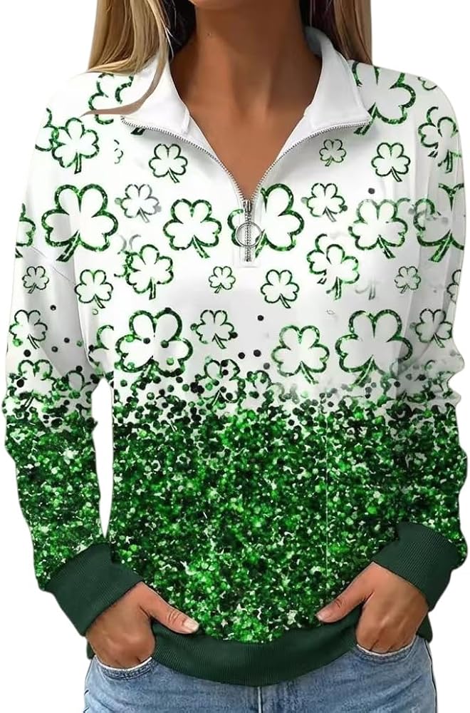 • Women's Long Sleeve St Patrick's Day Sweatshirt Casual Lucky Irish Glitter Shamrock Paddy's Day Shirts Pullover Tops