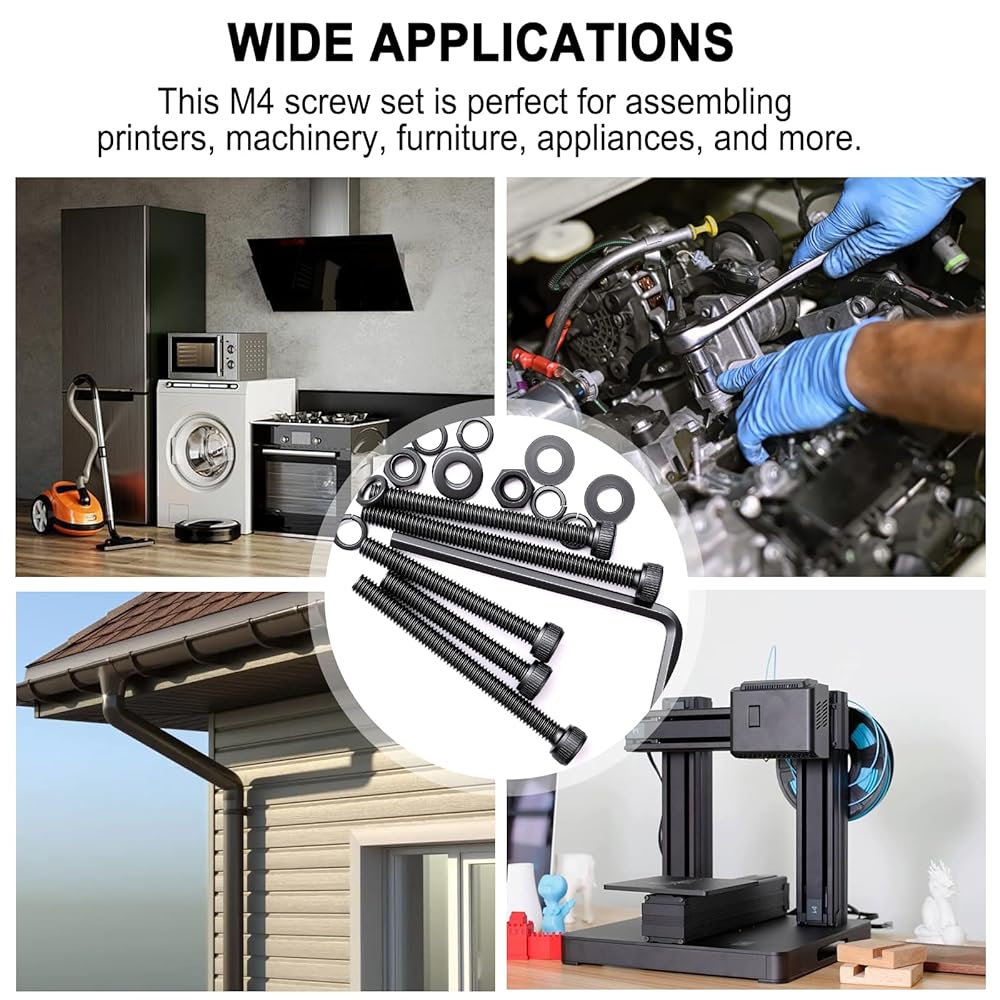 • طقم براغي M4، برغي وصامولة برأس مقبس سداسي، غسالة قفل/غسالة مسطحة، مجهزة بمفتاح ربط سداسي، سهلة التركيب والاستخدام. أحجام مختلفة يمكن أن تلبي احتياجاتك المختلفة.