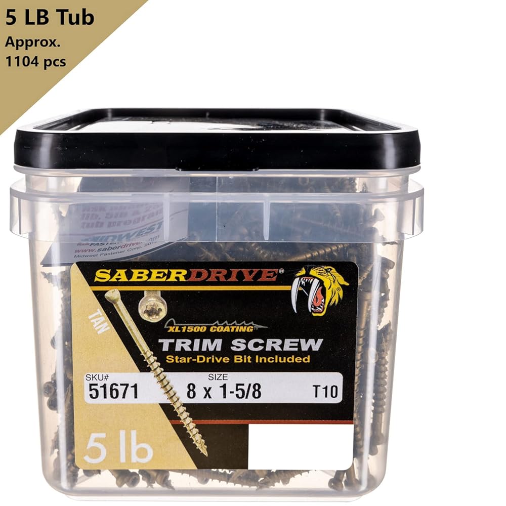 مسامير تقليم باللون البني XL1500، 5 رطل، تقريبًا. 694 قطعة - #8 × 2-1/2 بوصة براغي مسننة متينة وآمنة، أدوات تثبيت للزخرفة والسقف والبناء والإصلاح