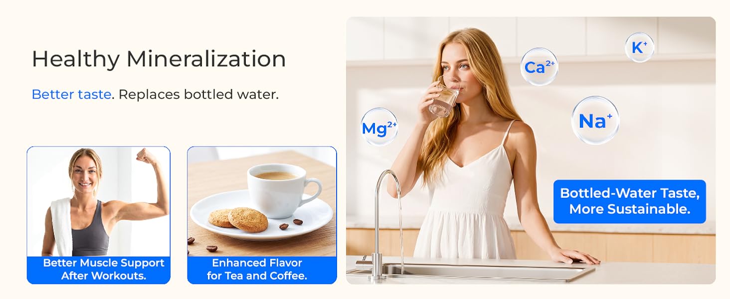 • [سهولة الإعداد واستبدال الفلتر بنفسك]: تم تصميم نظام تنقية المياه RO لسهولة التركيب مع تعليمات واضحة للإعداد الخالي من المتاعب. إن استبدال الفلتر باللف والسحب يجعل الصيانة بسيطة ومريحة. 𝐏𝐥𝐞𝐚𝐬𝐞 𝐧𝐨𝐭𝐞: يتطلب تركيب الصنبور حفر ثقوب في سطح العمل