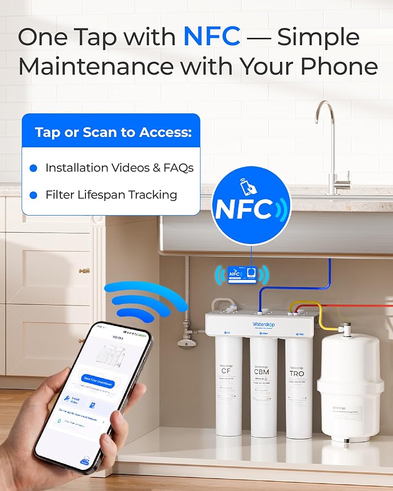 • [تقنية NFC الذكية، سهولة الصيانة]: اضغط على علامة NFC أو امسحها ضوئيًا للوصول الفوري إلى: ① مقاطع فيديو التثبيت والأسئلة الشائعة؛ ② تتبع عمر الفلتر في الوقت الحقيقي. تساعدك المراقبة الذكية على الحفاظ على الأداء الأمثل بسهولة