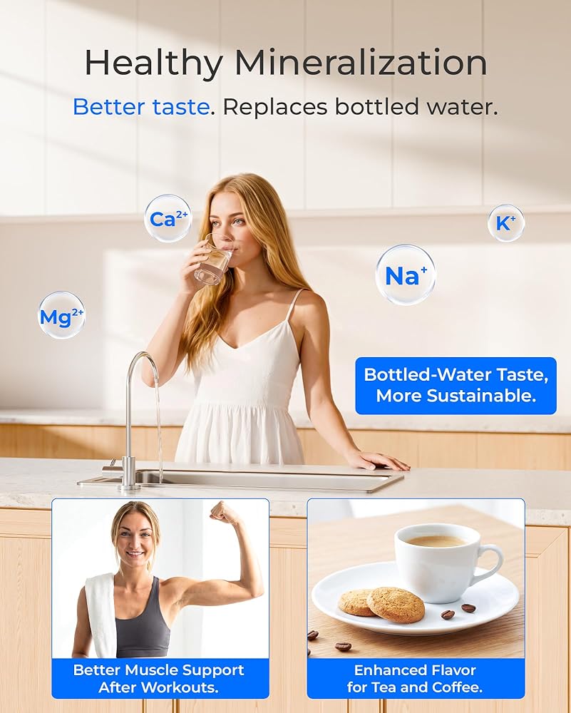 • [تدفق سريع 220 جيجا في اليوم وإعادة ملء الخزان بسرعة 7.5 دقيقة]: بسعة 220 جالونًا في اليوم، يوفر فلتر المياه التناضح العكسي Waterdrop هذا إمدادًا ثابتًا من المياه المعدنية RO لمنزلك. يتم إعادة ملء خزان التخزين خلال 7.5 دقيقة فقط، مما يضمن أن المياه جاهزة عند الحاجة إليها