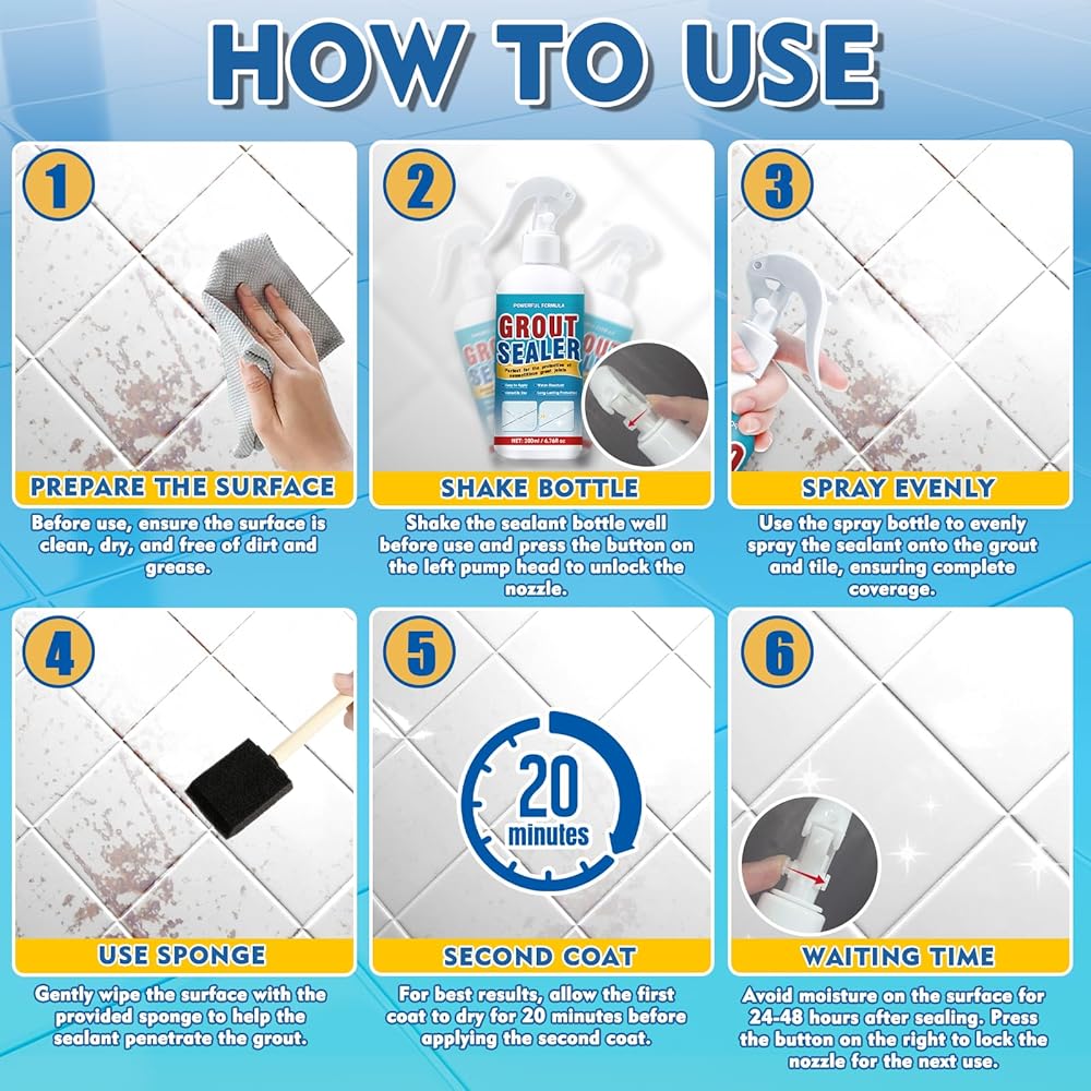 • سهولة الرش عند الاستخدام: تم تصميم مانع تسرب الجص الخاص بنا لبلاط الأرضيات خصيصًا للاستخدام المنزلي. ما عليك سوى وضعه بالتساوي على سطح مانع التسرب باستخدام الفرشاة الإسفنجية أو زجاجة الرش المرفقة. للحصول على أفضل النتائج، اتركي الطبقة الأولى حتى تجف لمدة 20 دقيقة قبل وضع الطبقة الثانية، واتركيها لتجف بالكامل خلال 24-48 ساعة.