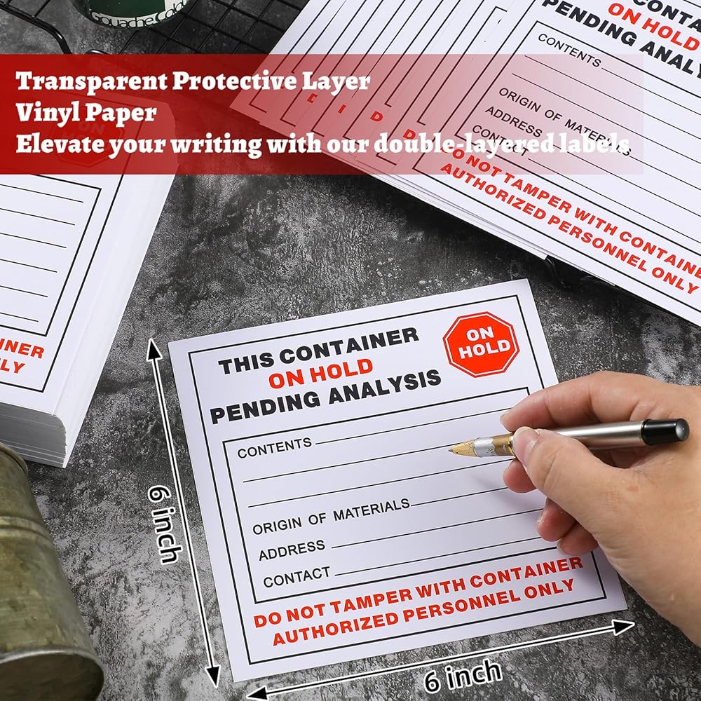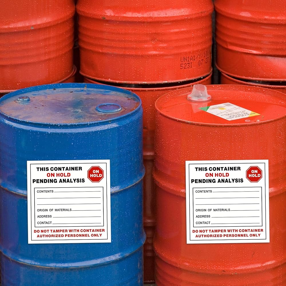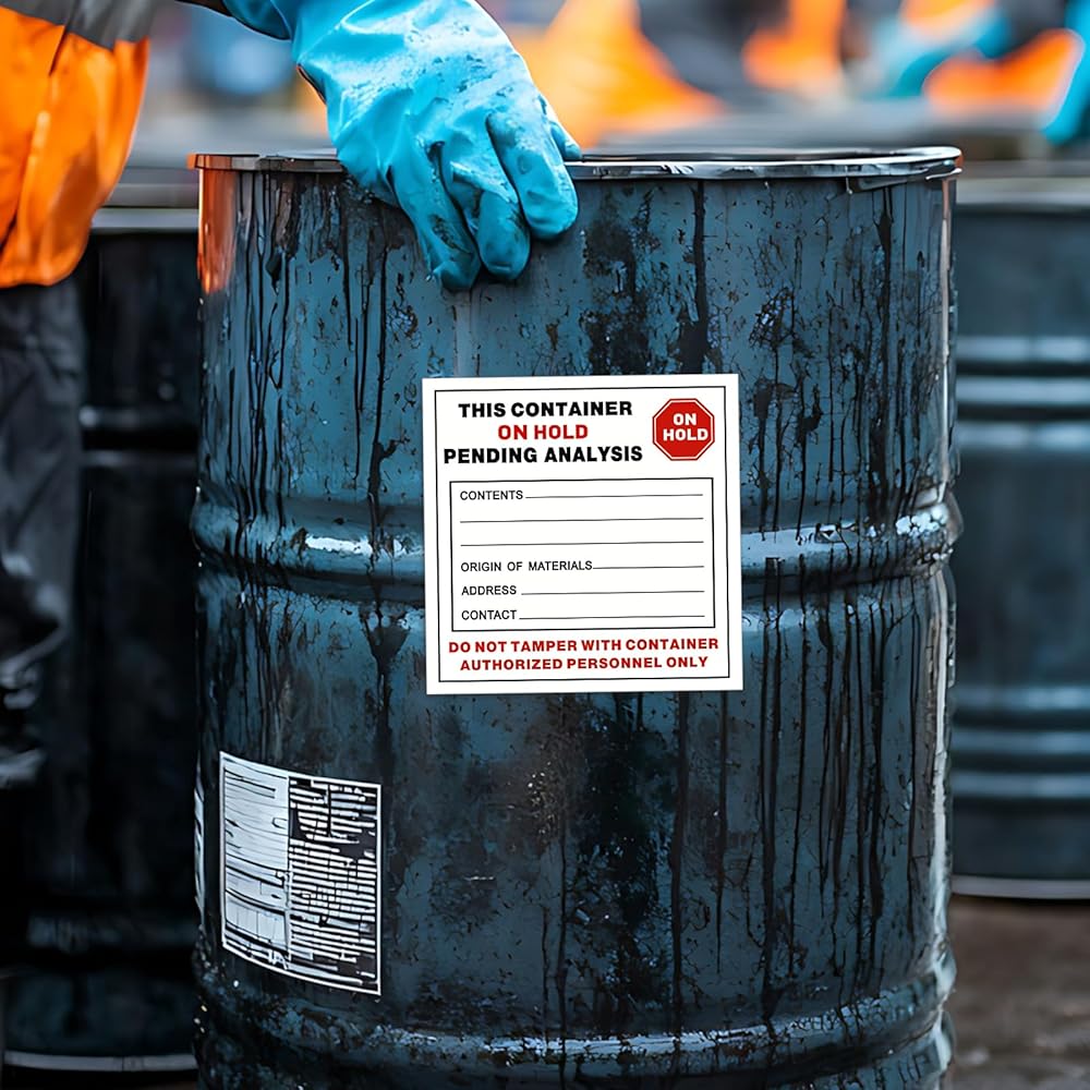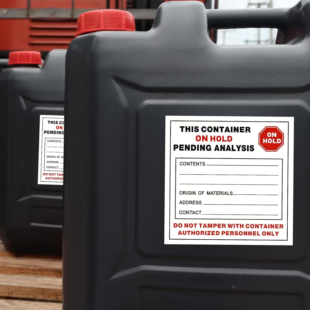 These poly vinyl waste labels feature permanent adhesive that bonds securely to most surfaces including plastic metal and cardboard container