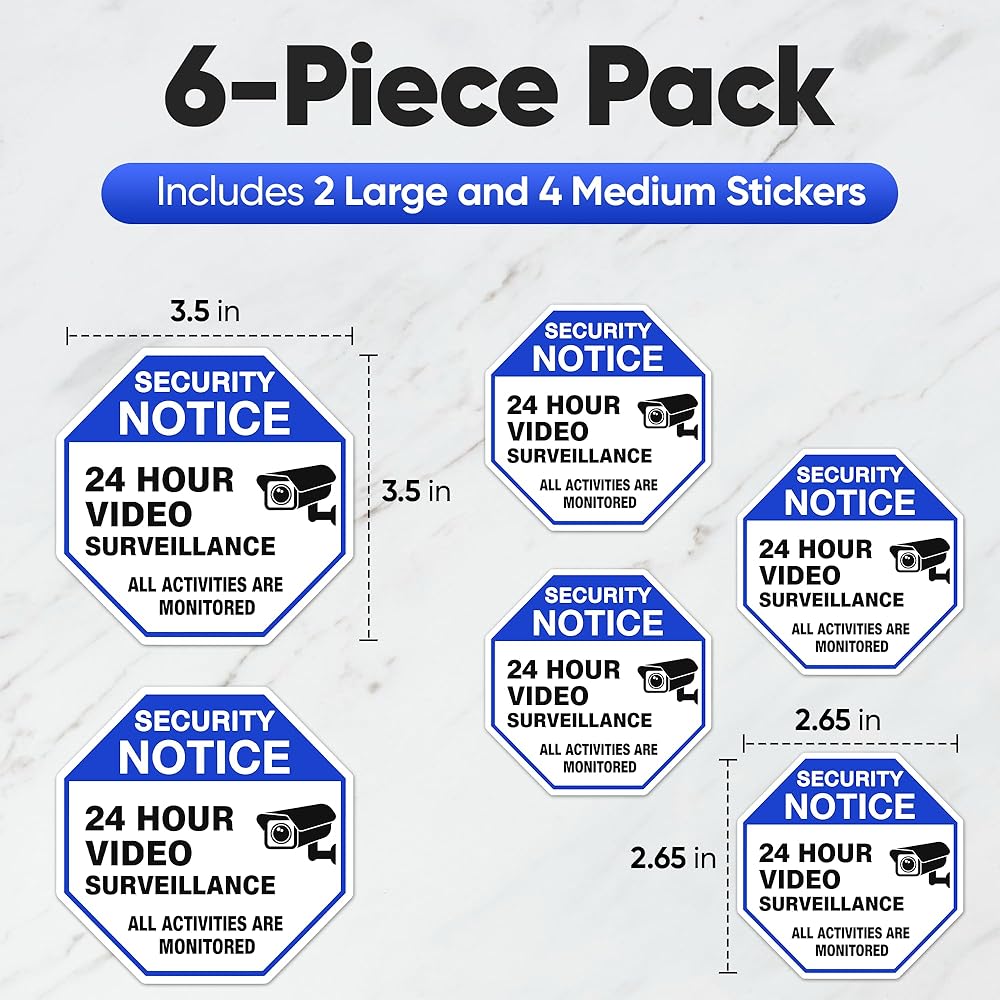 6-PACK - Includes six Security Camera Signs, perfect for placing in multiple areas, with clear Video Surveillance signs to ensure comprehensive coverage and enhance property protection.