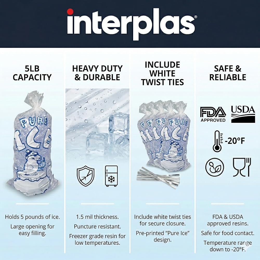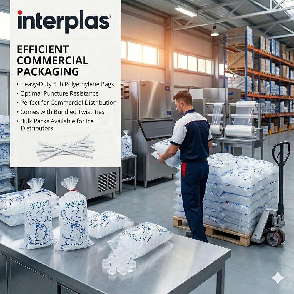 مصمم للاستخدام التجاري: مصمم لتلبية متطلبات المتاجر ومحطات الوقود والمطاعم وموزعي الثلج. مناسب أيضًا لتعبئة البضائع المجمدة في المطابخ التجارية أو أثناء المناسبات واسعة النطاق.