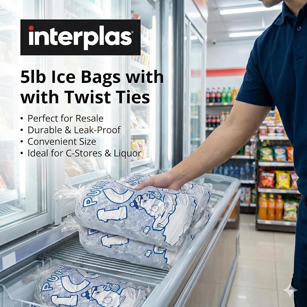 إغلاق سريع وآمن: تشتمل كل حقيبة على ربطة عنق ملفوفة من أجل إغلاق سريع وآمن - مثالية لبيئات البيع بالتجزئة المزدحمة، أو آلات بيع الثلج، أو التعبئة كبيرة الحجم.