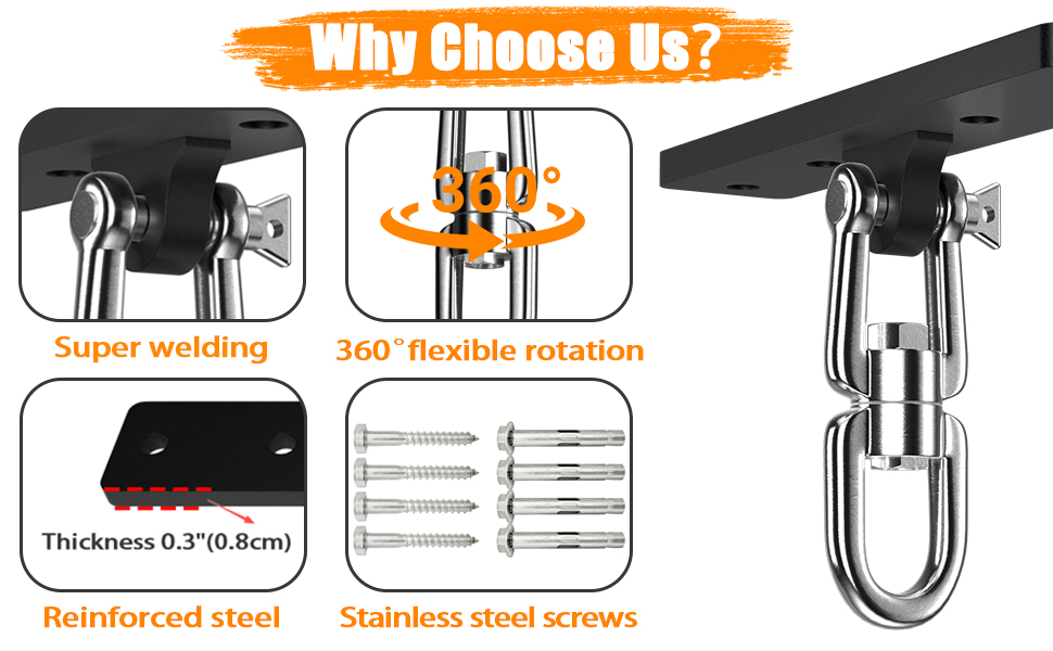 • 【Quality Service Guarantee】 We stand firmly behind the quality of heavy bag mount and offer you a solid commitment. Should you be dissatisfied with any product for any reason, please contact us at any time. We will actively provide you with a solution. Our premium products deserve your complete confidence in purchase