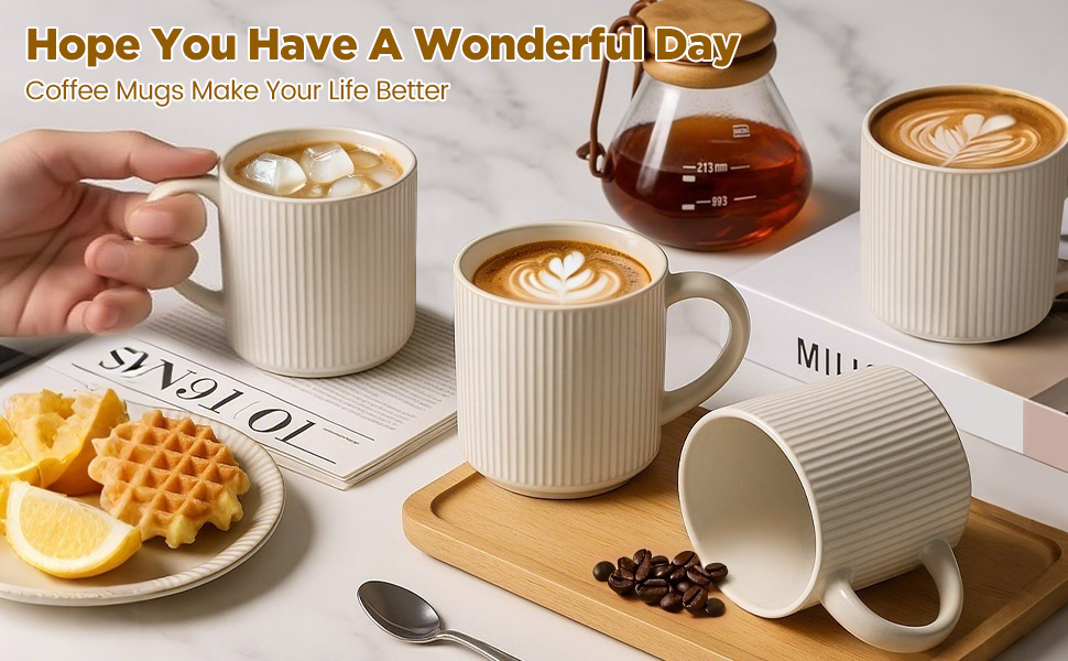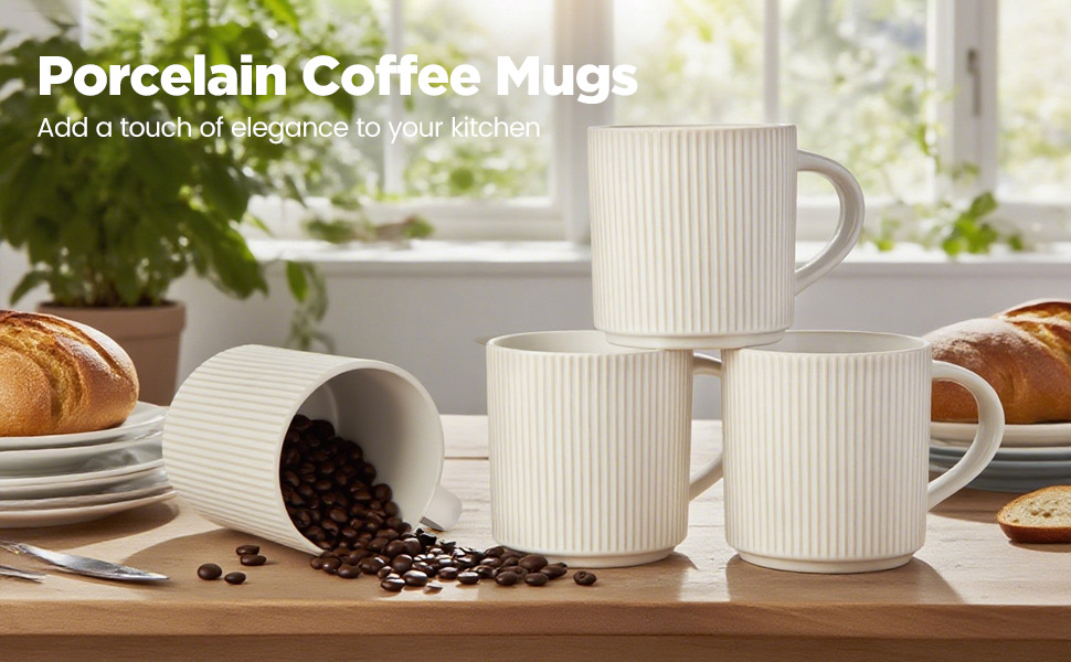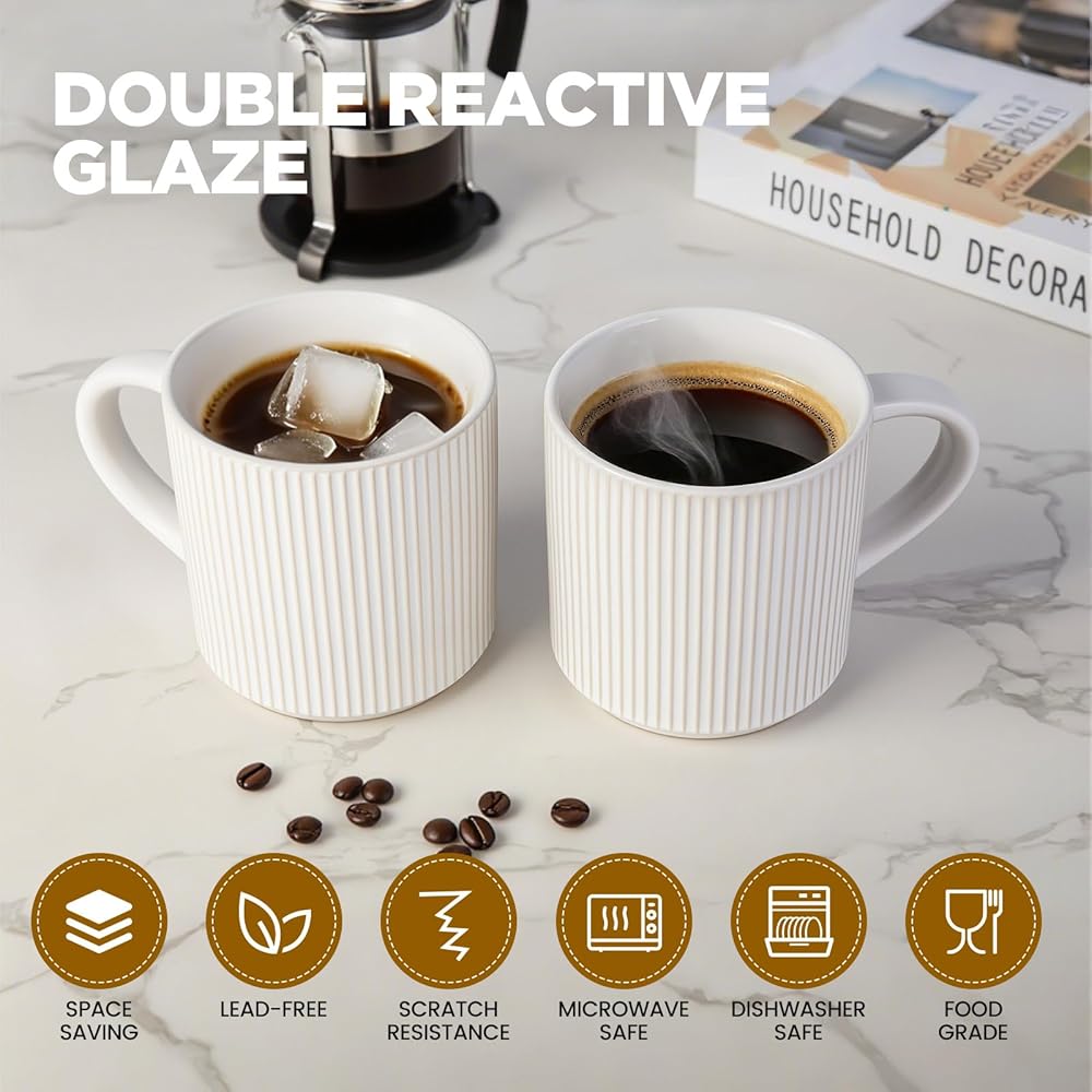 • مجموعة أكواب سيراميك بيضاء مكونة من 4 عبوات - كل كوب من DeeCoo يحمل 12 أونصة من مشروباتك الساخنة أو الباردة المفضلة - مثالي للقهوة والشاي والكاكاو والعصائر والمزيد. التصميم الأبيض الخالد يناسب أي مطبخ أو نمط مكتب.