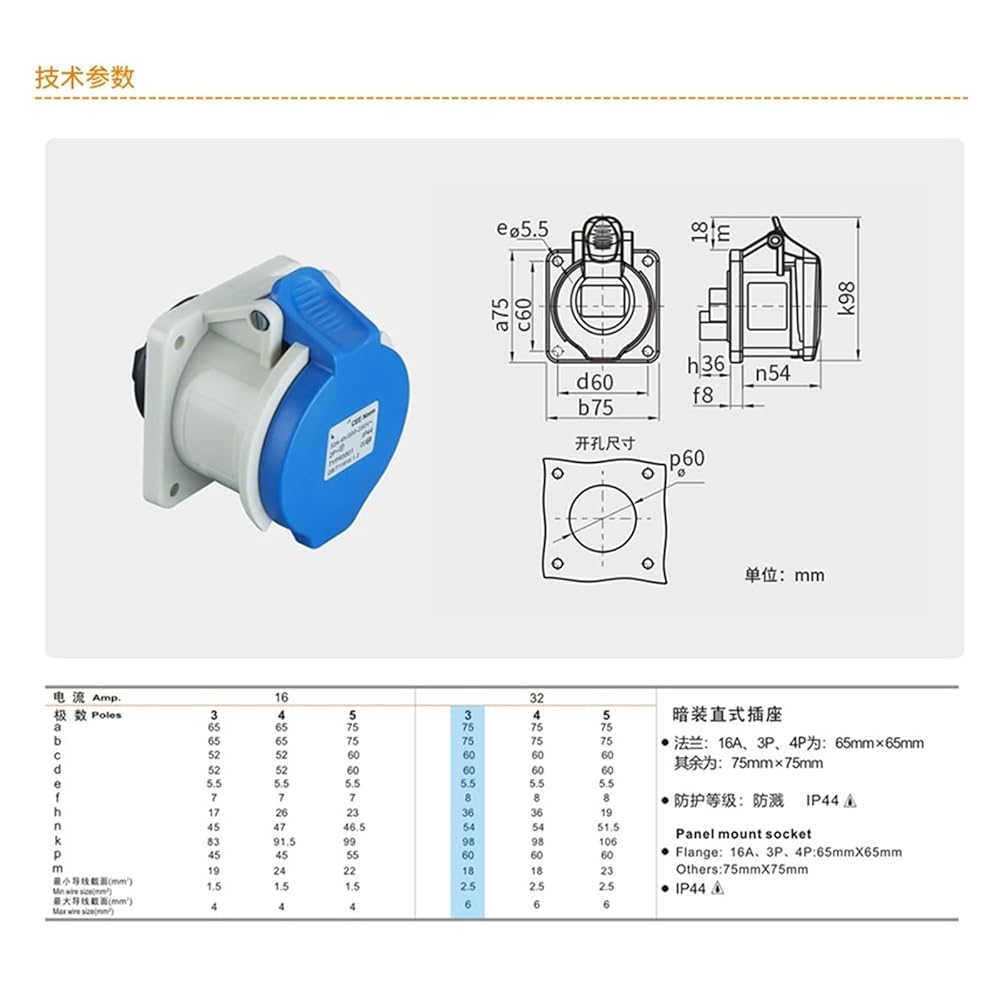 موصل المقبس الصناعي TYPR5801 (32A 3 كور) مقعد مستقيم