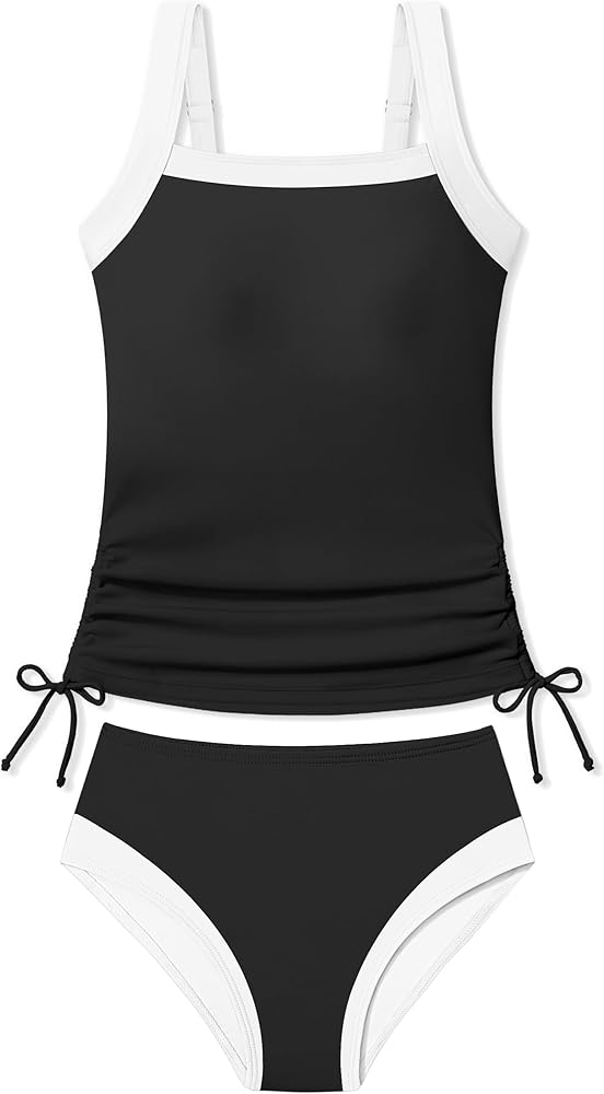 • 🌴🌴تصميم فريد: تتميز مجموعة تانكيني الفتيات هذه بقميص بدون أكمام عصري مع زخرفة ملونة، وأربطة جانبية تسمح بطول قابل للتعديل، مما يخلق صورة ظلية جذابة. تضمن الأشرطة العريضة القابلة للتعديل ملاءمة آمنة، مما يجعلها مثالية للمراهقين/المراهقات/الفتيات النشيطات اللاتي يستمتعن بأنماط أنيقة وشخصية.