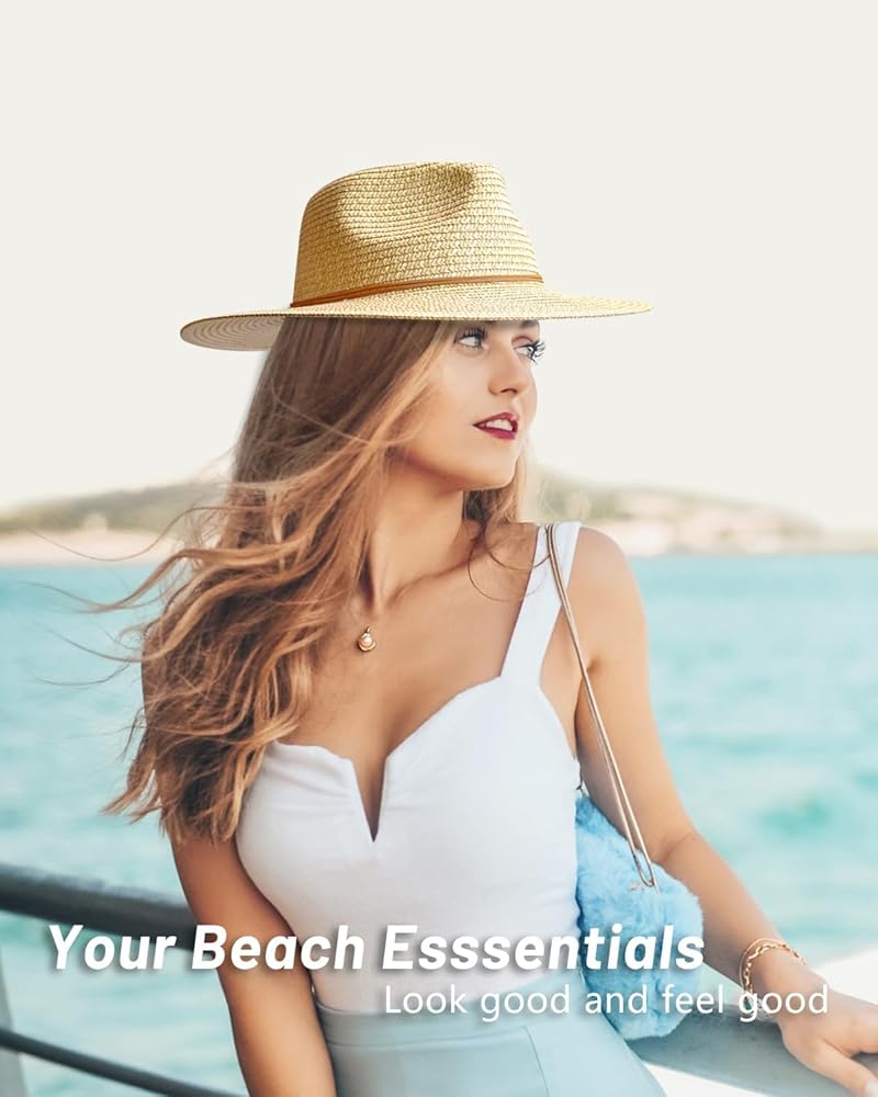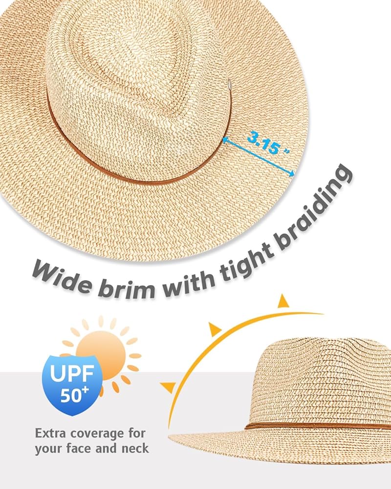 قبعة شمس بنما سترو للنساء والرجال، قبعة فيدورا واسعة الحواف قابلة للطي للسفر، قبعة صيفية للشاطئ بالأشعة فوق البنفسجية بعامل حماية من الأشعة فوق البنفسجية 50+