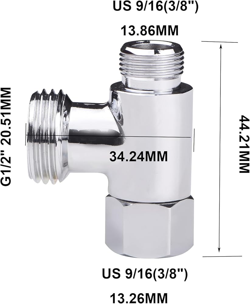 التوصيلات القياسية - تناسب صمامات إيقاف الزاوية مقاس 3/8 بوصة (OD) وخطوط إمداد المياه (وليس NPT). يتصل منفذ ذكر G1/2 (BSPP، 20.5 مم OD) بمعظم رشاشات الشطاف أو الحنفيات أو غسالات الأطباق أو فلاتر المياه.