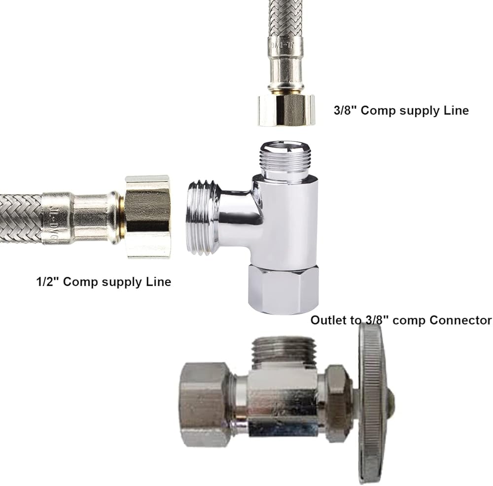 تتضمن العبوة - 2 × محولات صمام Add-A-Tee (3/8 بوصة × 3/8 بوصة × G1/2 ذكر) مع حشوات. مدعومة بدعم العملاء للمساعدة في التثبيت أو الاستبدال إذا لزم الأمر.