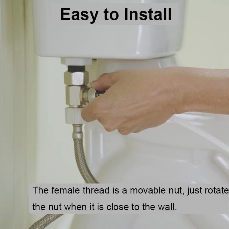 تركيب سهل - ببساطة قم بشد الصمولة يدويًا على توقف الزاوية، ثم قم بتوصيل خرطوم الصنبور وخرطوم منفذ G1/2. قم بوضع اللمسات النهائية باستخدام مفتاح ربط للحصول على ملاءمة محكمة وخالية من التسرب. لا يوجد سباك مطلوب.