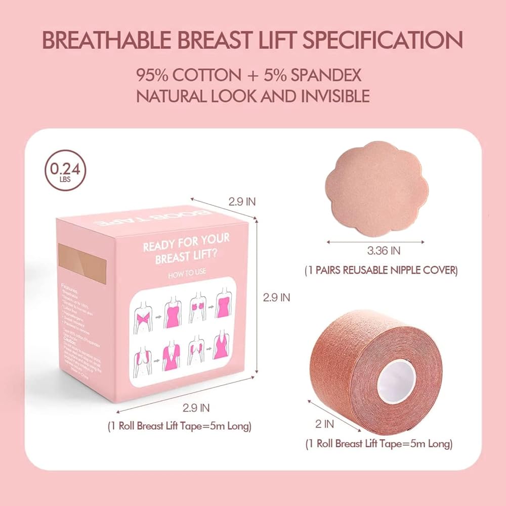• ثبات والتصاق قوي: يوفر شريط رفع الصدر الخاص بنا ثباتًا قويًا ومقاومًا للماء يدوم طوال اليوم! شريط رفع الصدر الخاص بنا مقاوم للرقص، فلا داعي للقلق بشأن ارتخاءه أثناء الخروج على حلبة الرقص! تخلصي من الأشرطة غير المريحة ودعي جسدك حرًا أثناء تثبيت الملابس والثديين في مكانهما!