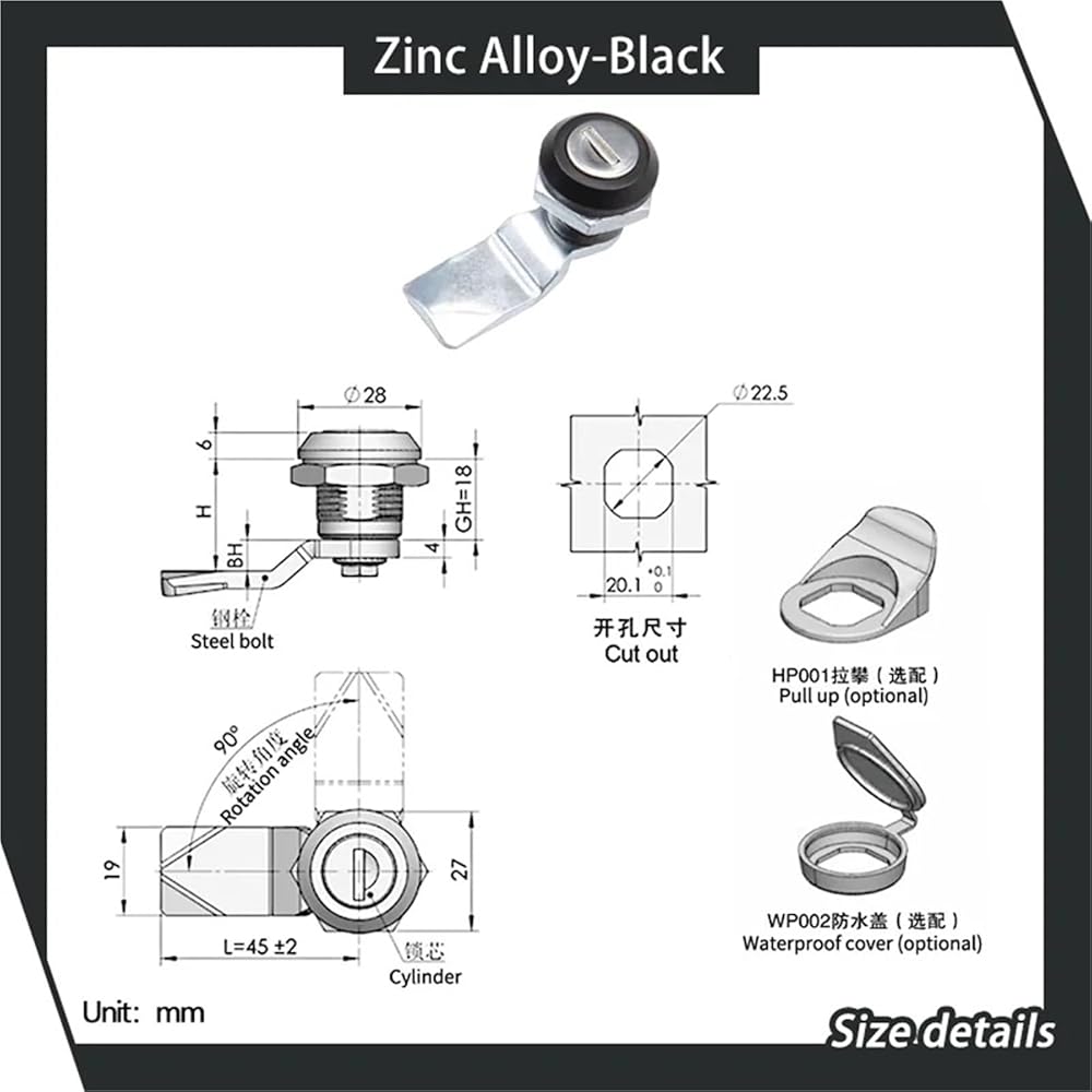 Round Headed Cylindrical Lock Zinc Alloy Industrial Mechanical Equipment Chassis Cabinet Door 1Pcs
