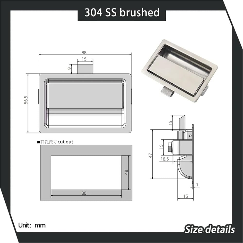 304 Stainless Steel Flat Lock Embedded Square Industrial Cabinet Door Toolbox 1Pcs