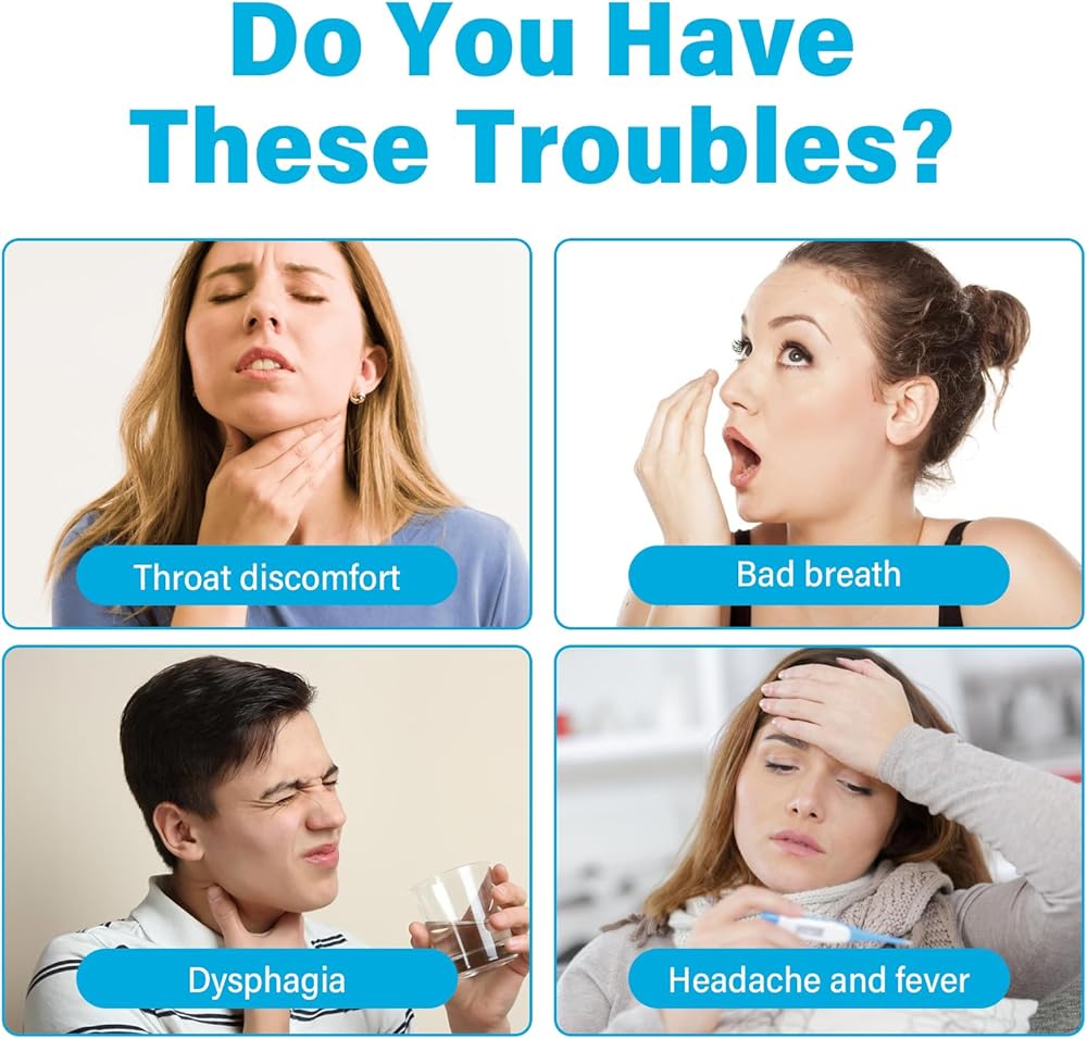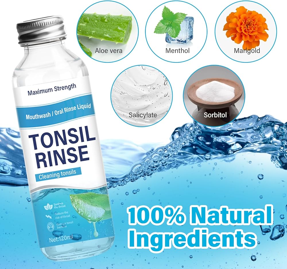 【عمل التنظيف المستهدف】يتجاوز الشطف العادي للمساعدة في تنظيف منطقة اللوزتين بلطف وإزالة الحطام. تم تصميم تركيبتنا للمساعدة في تقليل التراكم للحصول على فم أكثر نظافة ونفسًا أكثر انتعاشًا.