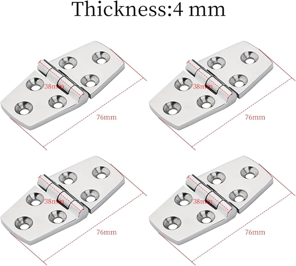 76 × 38 مم من الفولاذ المقاوم للصدأ 316 6 فتحات مفصلات تلميع شديدة التحمل 4 قطع