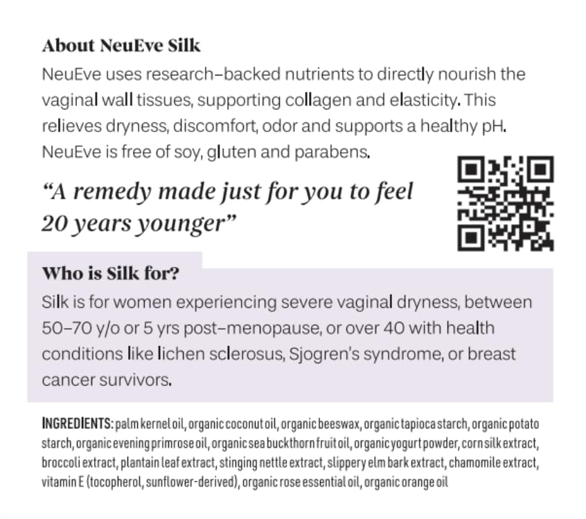 مرطب مهبلي طويل الأمد من NeuEve Silk - يوفر رطوبة مهدئة للجفاف والانزعاج، مكونات طبيعية بالكامل، المرحلة 1 | 8 عدد | العرض لمدة شهر واحد