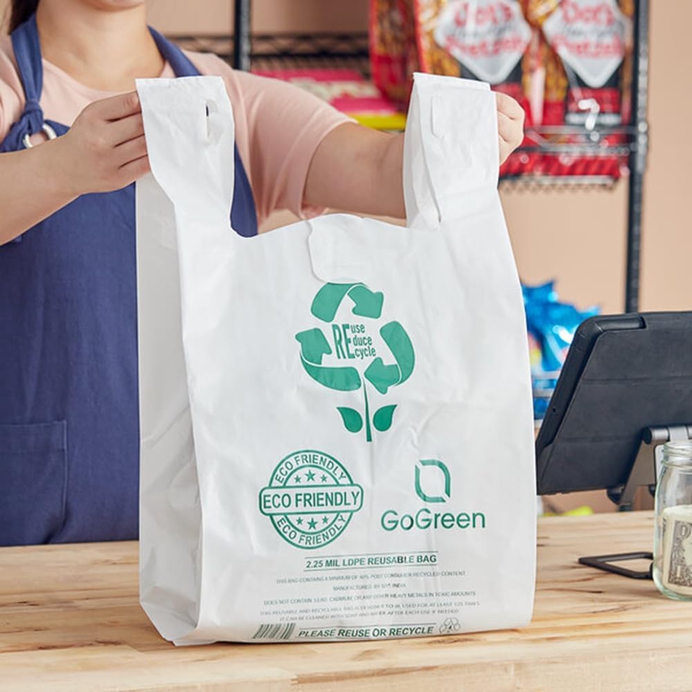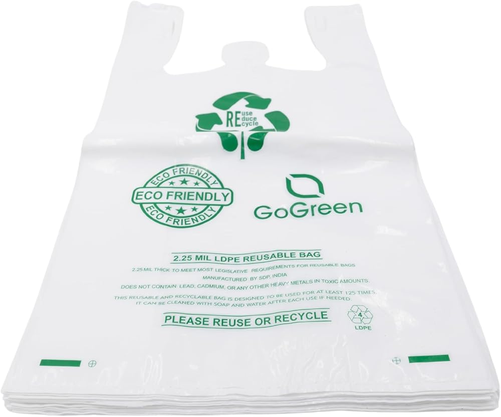 Upgrade your packaging with these 100 Count Biodegradable & Reusable T-Shirt Bags. Designed for restaurants, retailers, and everyday use, these extra-heavy duty bags combine commercial durability with eco-conscious design. Perfect for groceries, takeout, produce, and more.