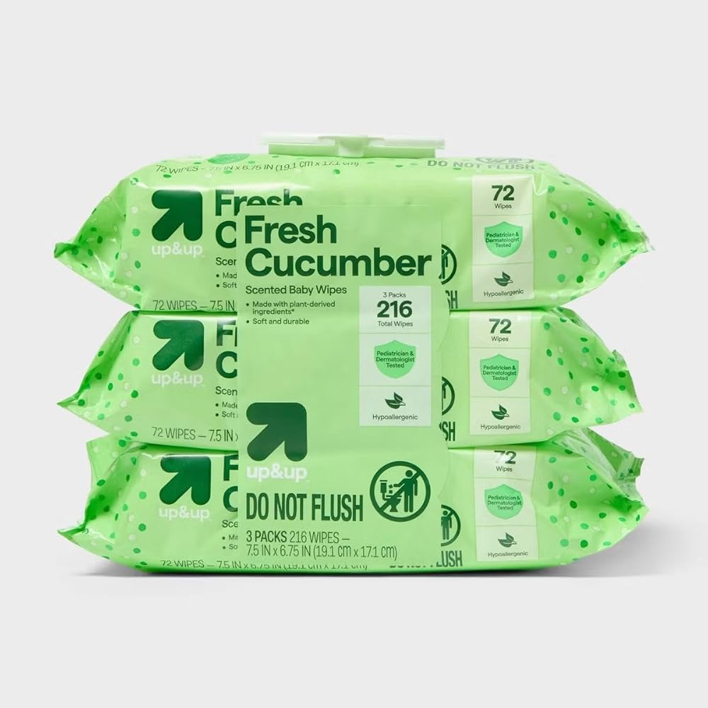 مناديل مبللة للأطفال برائحة الخيار الطازج - 3 عبوات (إجمالي 216 قطعة)