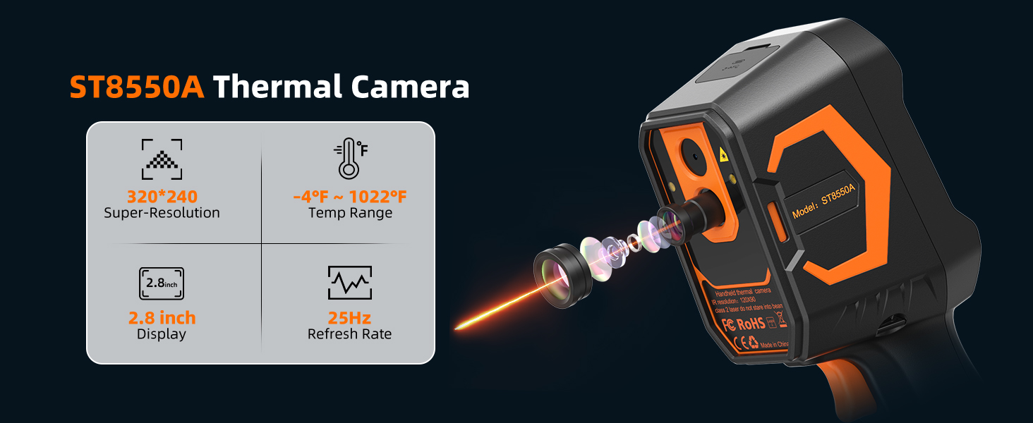 【مساعدة ثلاثية: شاشة كبيرة وليزر وإضاءة】تتميز كاميرا التصوير الحراري بشاشة عرض كبيرة مقاس 2.8 بوصة لمشاهدة مريحة. تدمج بشكل فريد مؤشر ليزر وإضاءة LED. يحدد الليزر الأهداف على الفور، بينما يضيء ضوء LED المناطق المظلمة. يجمع هذا النظام المزدوج المساعدة بين التصور الحراري والتأكيد البصري، مما يؤدي إلى تحسين دقة الفحص وكفاءته بشكل كبير.