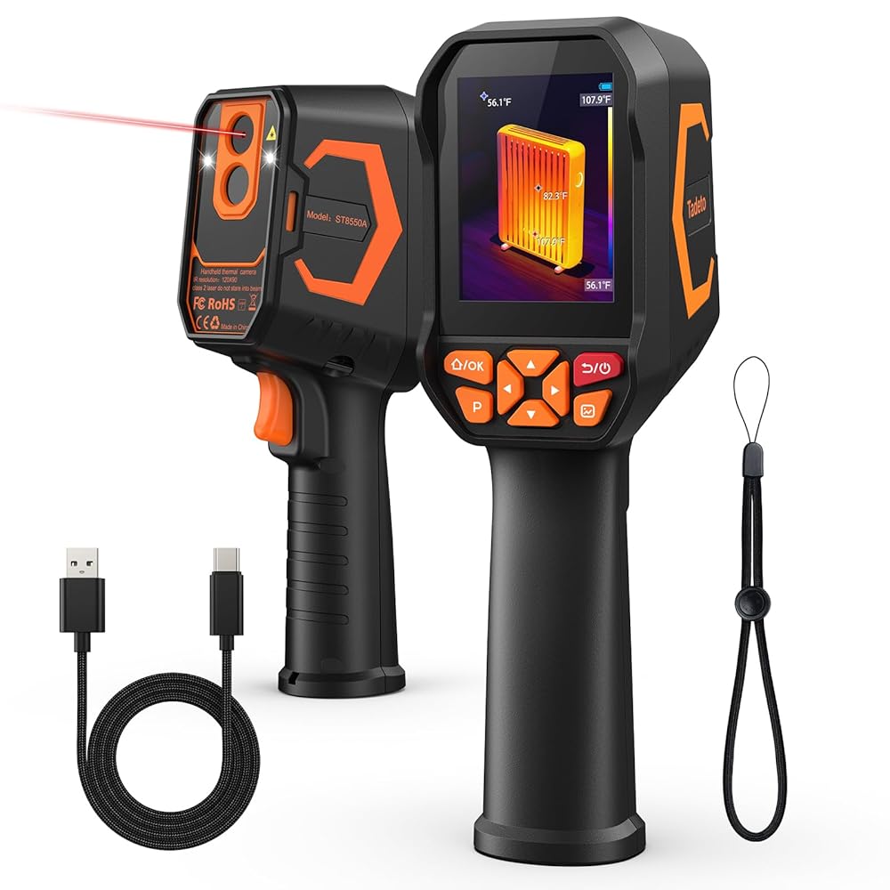 كاميرا Tadeto الحرارية بالأشعة تحت الحمراء، كاميرا تصوير حراري مع مؤشر ليزر، كاميرا تعمل بالأشعة تحت الحمراء بدقة 256*192 TISR مع شاشة LCD 320*240 و9 لوحات حرارية للفحص الكهربائي/التيار المتردد/التدفئة والتهوية وتكييف الهواء/الحيوانات الأليفة/المنزل