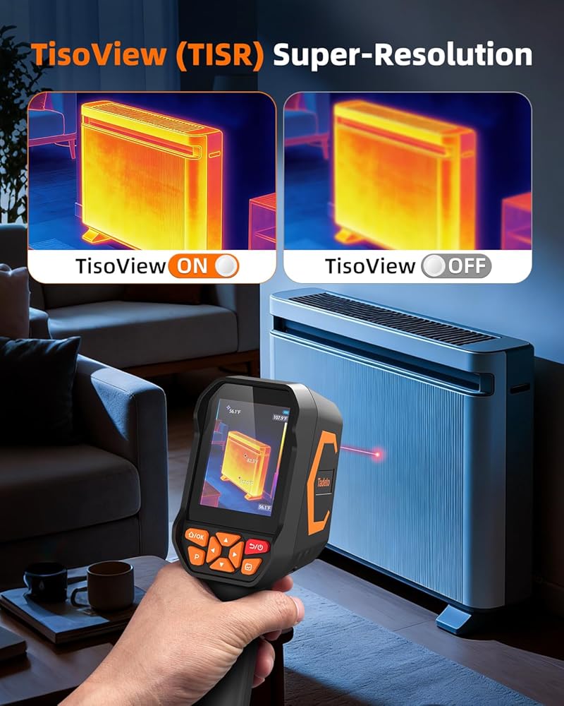 【دقة فائقة ومعدل تحديث】تستخدم كاميرا Tadeto الحرارية بالأشعة تحت الحمراء تقنية متقدمة فائقة الدقة لتحسين دقة 120x90 الأصلية إلى صورة حادة 320x240 HD. تكشف عن اختلافات دقيقة في درجات الحرارة والعيوب الخفية مع تفاصيل استثنائية للفحص والتحليل على مستوى احترافي. مع معدل تحديث سريع يبلغ 25 هرتز، توفر هذه الكاميرا الحرارية تصويرًا حراريًا سلسًا وسريع الاستجابة. قم بتقييم مصادر الحرارة والمخالفات الحرارية بسرعة في الوقت الفعلي، مما يساعدك على اتخاذ قرارات أسرع وأكثر استنارة.