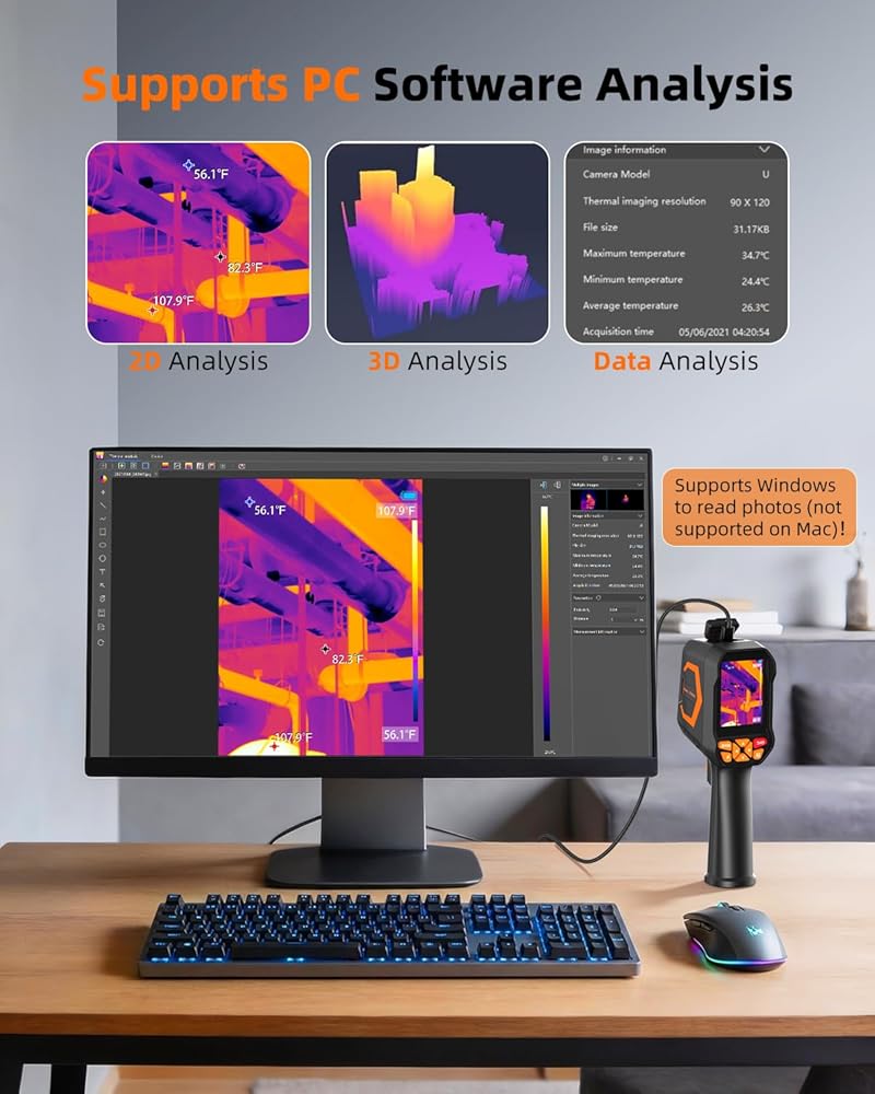 【تطبيقات متعددة الاستخدامات ومراقبة التفاعل مع الحيوانات】الكاميرا الحرارية ممتازة أيضًا لمراقبة تفاعل الحيوانات والحيوانات الأليفة. استخدمه لتتبع ومراقبة أنشطة الحيوانات الأليفة، ومراقبة سلوكهم، أو الكشف عن أي مشاكل صحية محتملة مثل الحمى أو الإصابات من خلال اختلافات التوقيع الحراري. سواء في الداخل أو الخارج، فهو يوفر طريقة فعالة لفهم رفاهية حيواناتك الأليفة، خاصة في ظروف الإضاءة المنخفضة. مصمم للتشغيل اليدوي والسهولة، مما يجعله أداة مثالية للكهربائيين وفنيي التدفئة والتهوية وتكييف الهواء ومفتشي المنازل وعشاق الأعمال اليدوية. مثالي لاستكشاف الأخطاء وإصلاحها الكهربائية، وفحص التدفئة والتهوية وتكييف الهواء (HVAC)، ومراجعة الطاقة المنزلية، وإصلاح السيارات، ودوريات السلامة الخارجية.