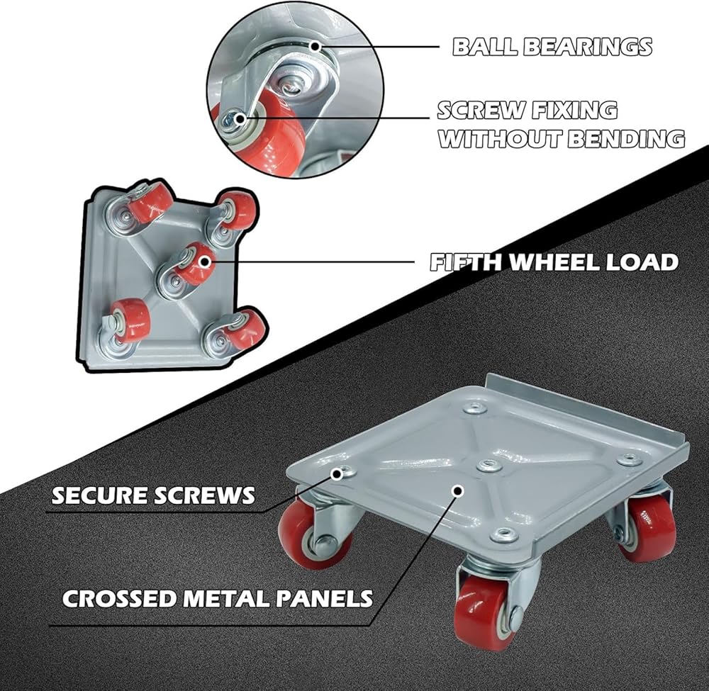 5 Wheels Design: Compared to furniture dolly with 4 wheels, the new furniture moving wheels has an additional middle wheel that can support heavier duty furniture. all wheels can move 360 ratating. Heavy furniture sliders achieve both style and durability with the high-carbon steel panel paired with eye-catching red wheels, furniture movers built to withstand repeated use.suitable for wooden floors, tile floors