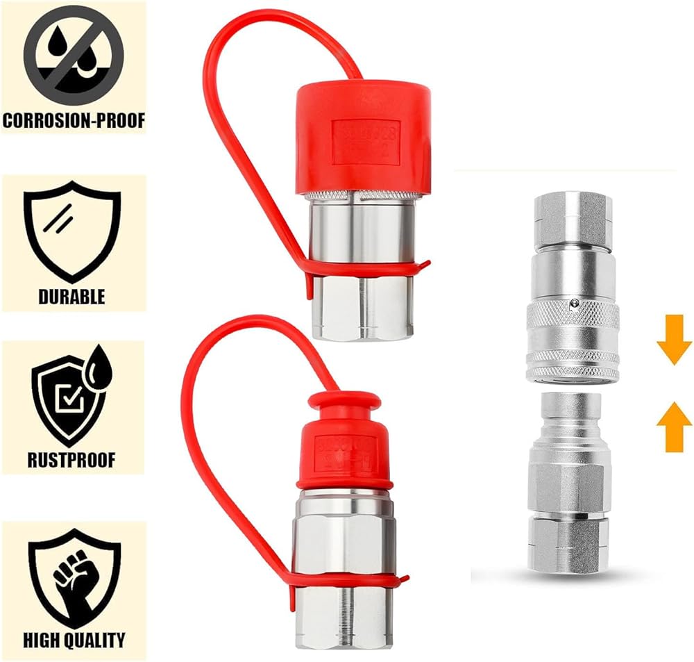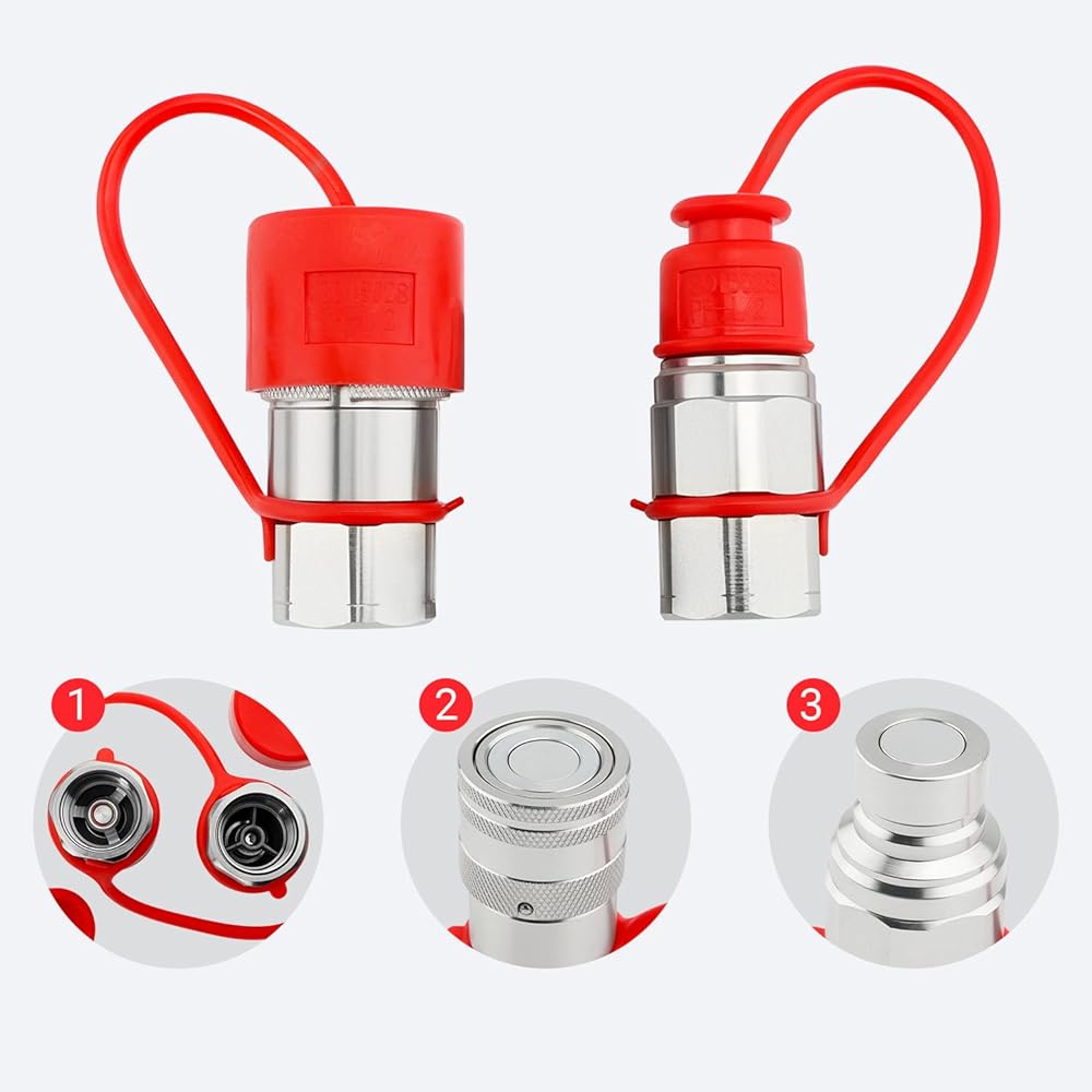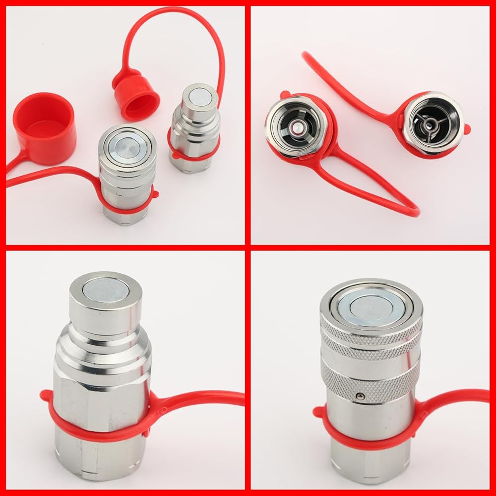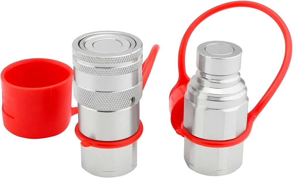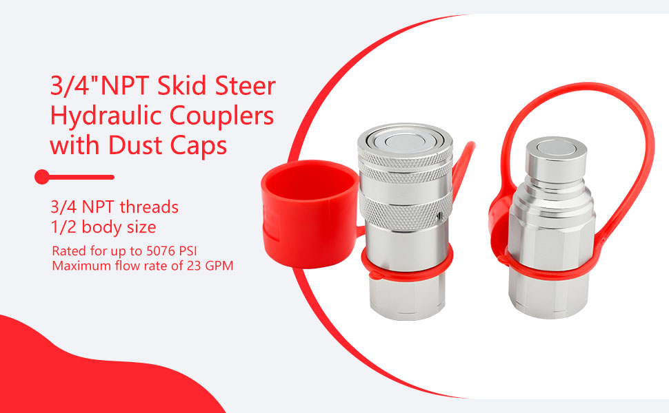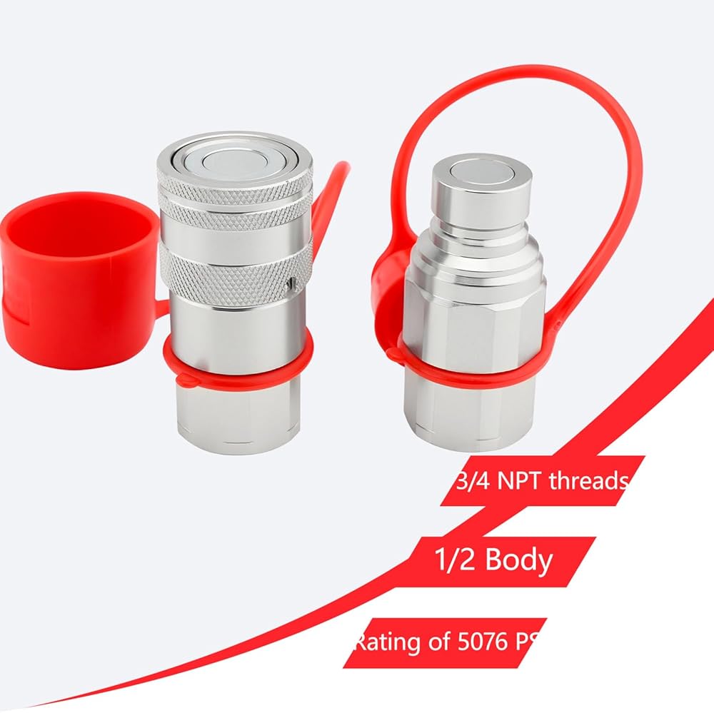 قارنات هيدروليكية انزلاقية التوجيه 3/4 بوصة NPT مع أغطية غبار ذات وجه مسطح هيدروليكي سريع التوصيل، تصنيف 5076 رطل لكل بوصة مربعة، 3/4 سنون NPT و1/2 جسم