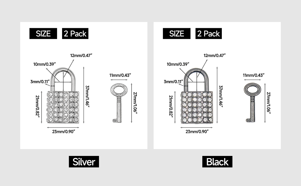 • 【تصميم حجر الراين المبهر】تتميز أقفال Joyangy المزخرفة بسطح لامع ولافت للنظر مزين بالعديد من أحجار الراين، مما يضيف لمسة من الأناقة والبريق إلى أمتعتك أو خزاناتك أو صناديق المجوهرات. لا توفر هذه الأقفال المربعة الصغيرة الأمان فحسب، بل تعمل أيضًا كمعلقات زخرفية جميلة، مما يزيد من المظهر الجمالي لممتلكاتك.