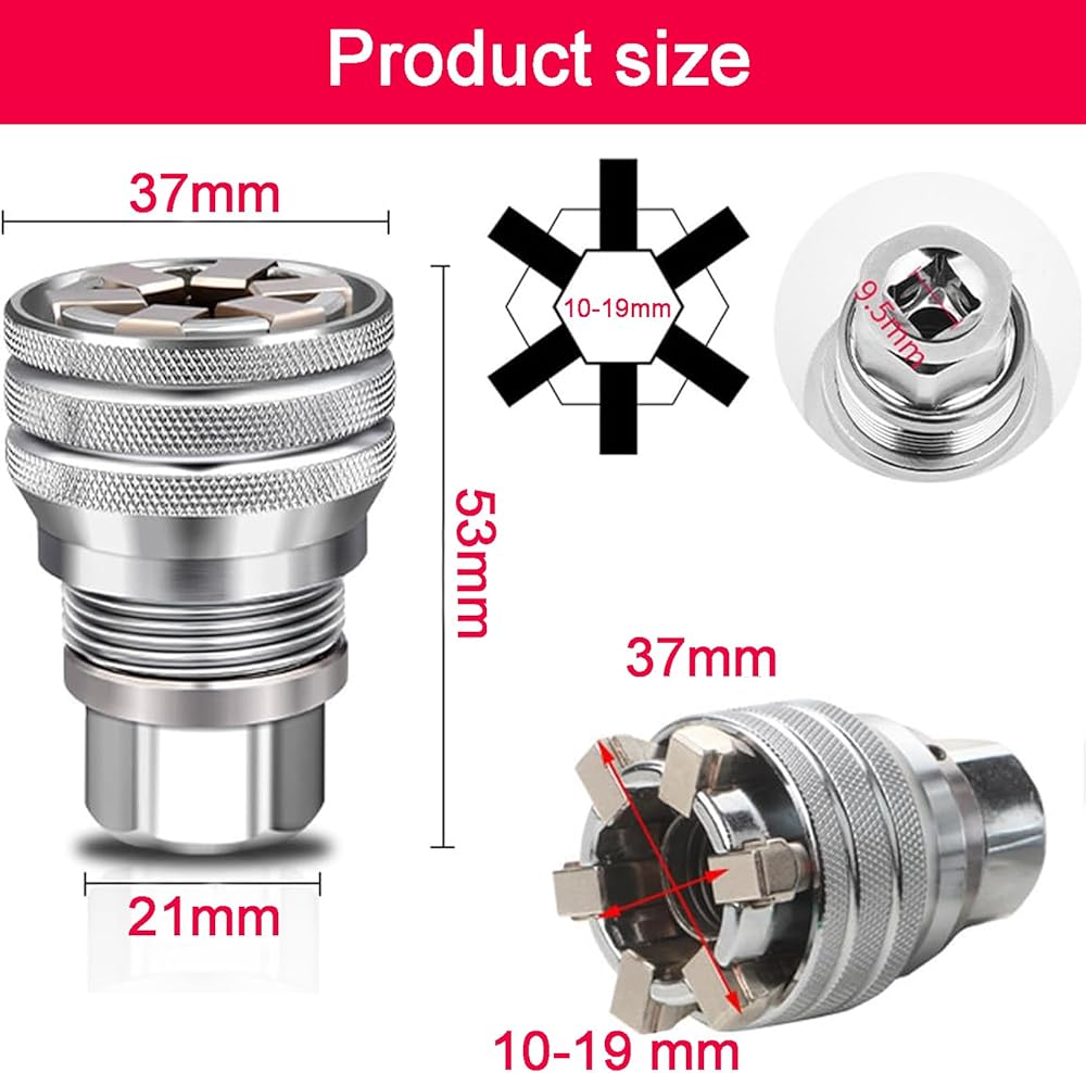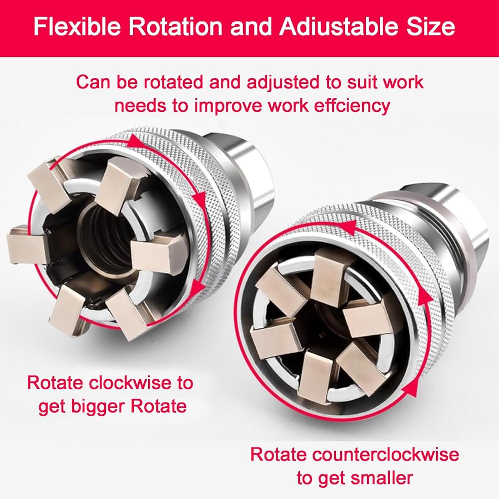 1. Versatile Adjustable Universal Socket: Experience the convenience of our universal socket wrench, expertly designed to accommodate a wide variety of nut and bolt sizes. Say goodbye to cluttered toolboxes and hello to effortless repairs with a single multifunctional tool, perfect for even damaged, rusty, or stripped fasteners
