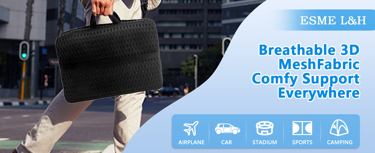 【رفيق مريح متعدد الاستخدامات】 هذه الوسادة ليست فقط وسادة مقعد رائعة للسفر للطائرة، ولكنها أيضًا اختيار أساسي كوسادة مقعد في الاستاد. إنه أمر ضروري لمقاعد الملعب أو دور السينما أو مقاعد الكنيسة أو أي أسطح صلبة أخرى، مما يضمن لك الجلوس بشكل مريح في أي مكان.
