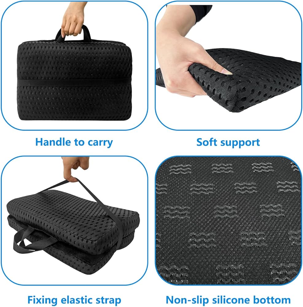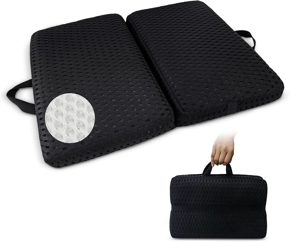 【داعمة وتخفيف الألم】 - تم تصميم وسادة مقعد السفر القابلة للطي هذه لتوفير الراحة ويمكن أن تتكيف مع أي شكل ووزن للجسم. لا مزيد من الجلوس على أرض صلبة وباردة؛ استمتع بمقعد ناعم ومريح بدلاً من ذلك