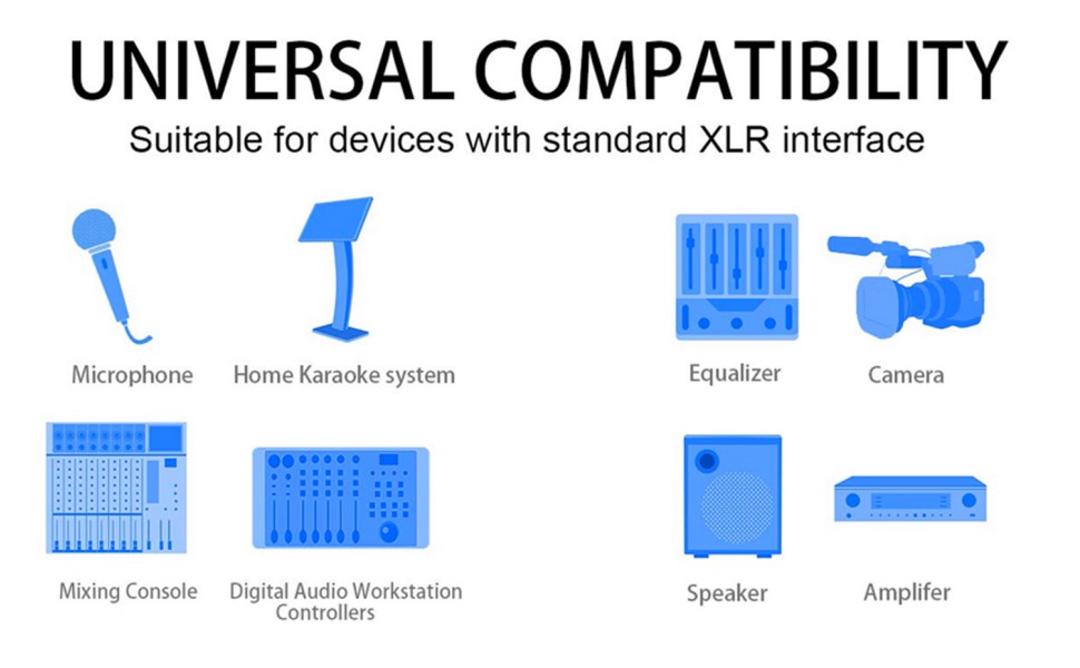 ➤➤ كابل مقسم ميكروفون متوازن xlr Y: سلك XLR ذكر بزاوية قائمة إلى سلك أنثى بزاوية قائمة متوافق مع مجموعة من المعدات التي تتميز بموصلات XLR القياسية ذات 3 سنون، مثل مكبر الصوت، والميكروفون، والمؤثرات، والخلاط، والمعادل، ومنسق الاستوديو، وDMX LED، والجهاز الإلكتروني، ومكبر الصوت، والجيتار الكهربائي والمزيد. يستخدم على نطاق واسع في المسرح، وقاعة الحفلات الموسيقية، والمدرسة، والكنيسة، وإضاءة الاستوديو والتسجيل، وغيرها من إعدادات الصوت الاحترافية.