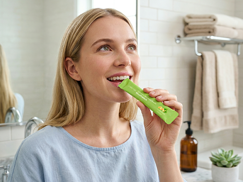 【 تركيبة خالية من الكحول والغلوتين 】 مصنوعة من مكونات طبيعية صالحة للطعام للعناية فائقة اللطف. مثالية للأفواه الحساسة، تركيبتنا الخالية من الكحول والغلوتين تعمل على تلطيف تقرحات الفم دون تهيج. لا يحتوي على أصباغ صناعية أو مواد كيميائية قاسية - فقط نضارة نقية تنظف بلطف وتمنع البقع.